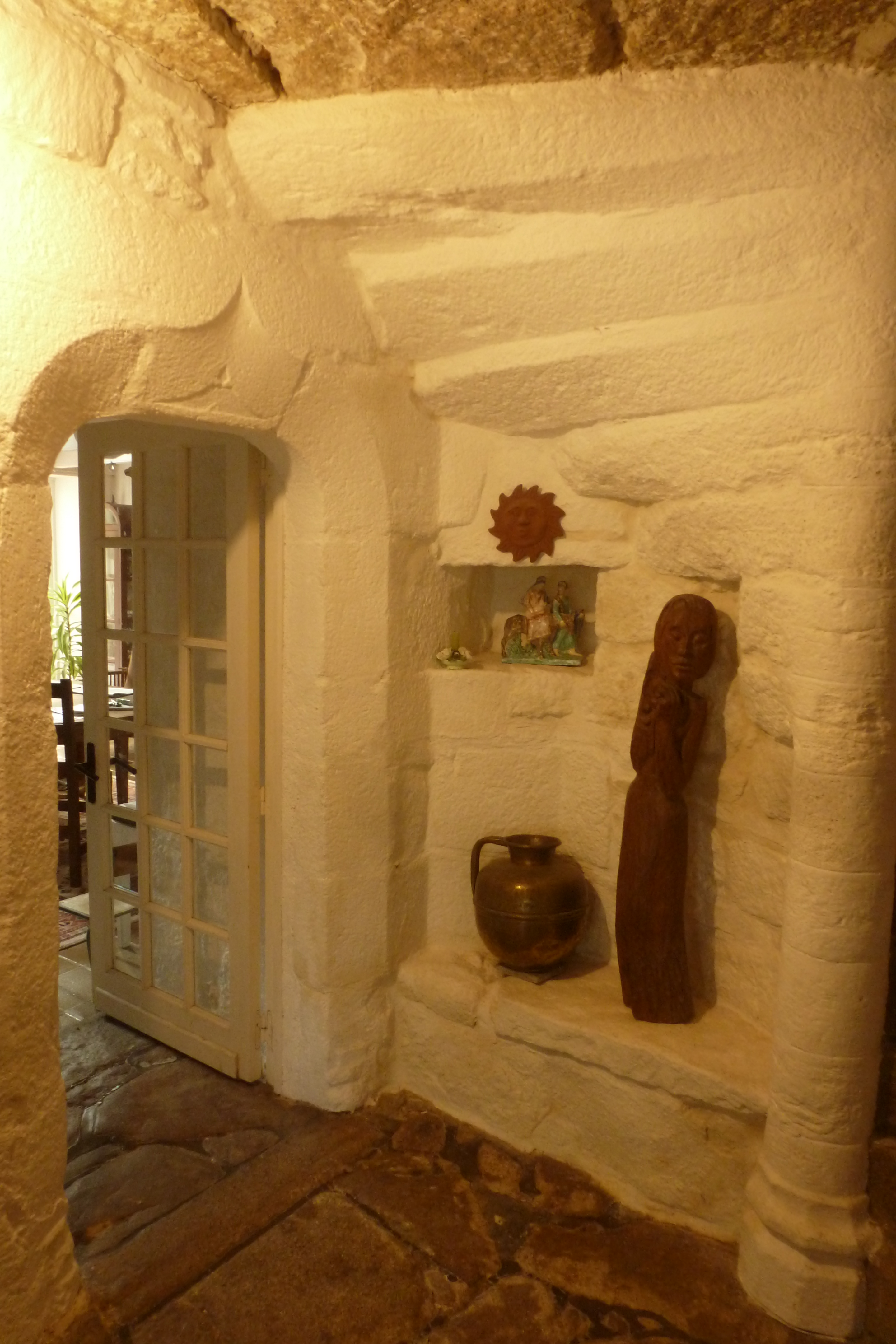 Rez-de-chaussée, escalier et porte d'accès sud, banc et niche. (2020)Immatriculation
