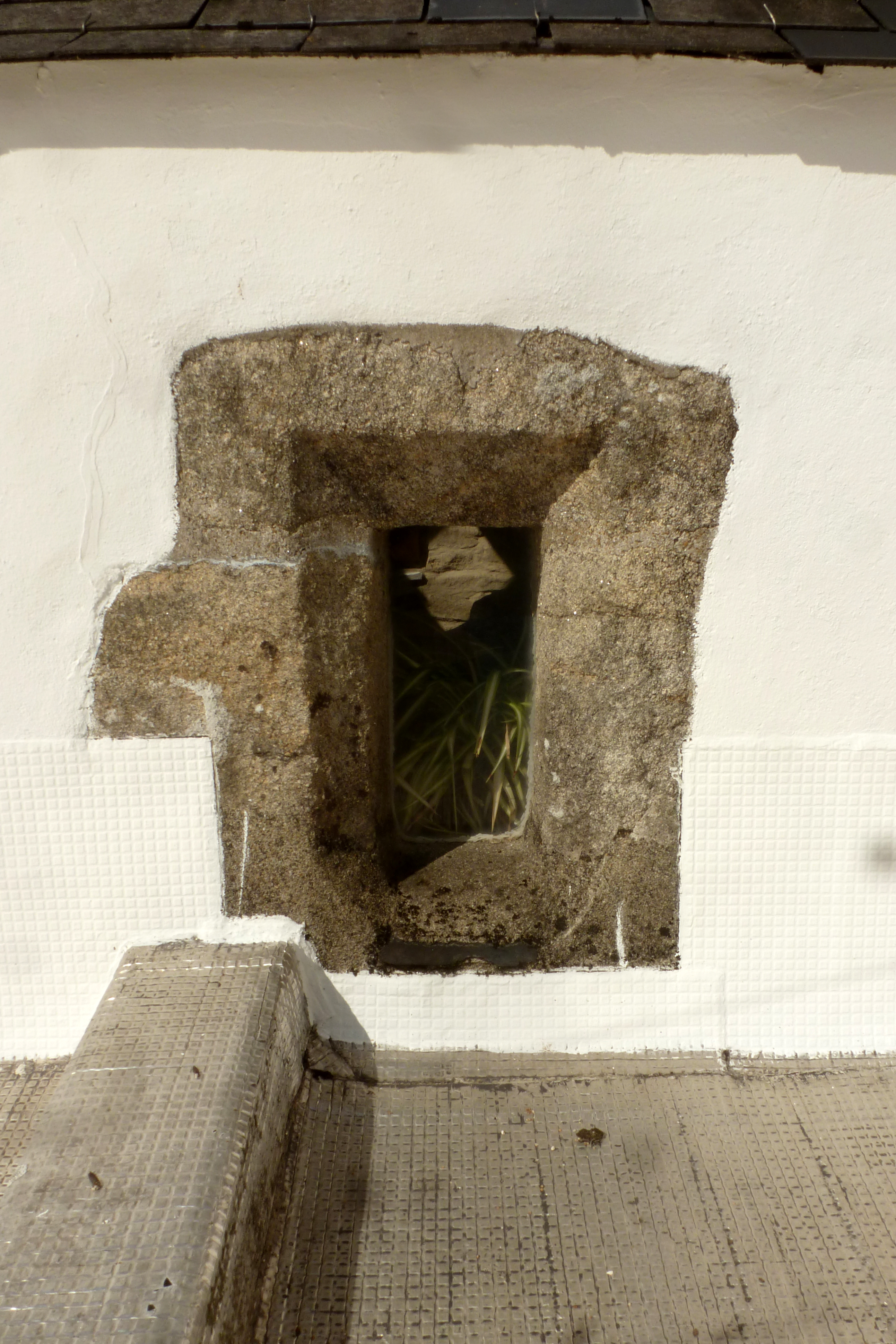 Jour d'escalier au niveau du second étage. Vue prise de l'extérieur. (2020)Immatriculation