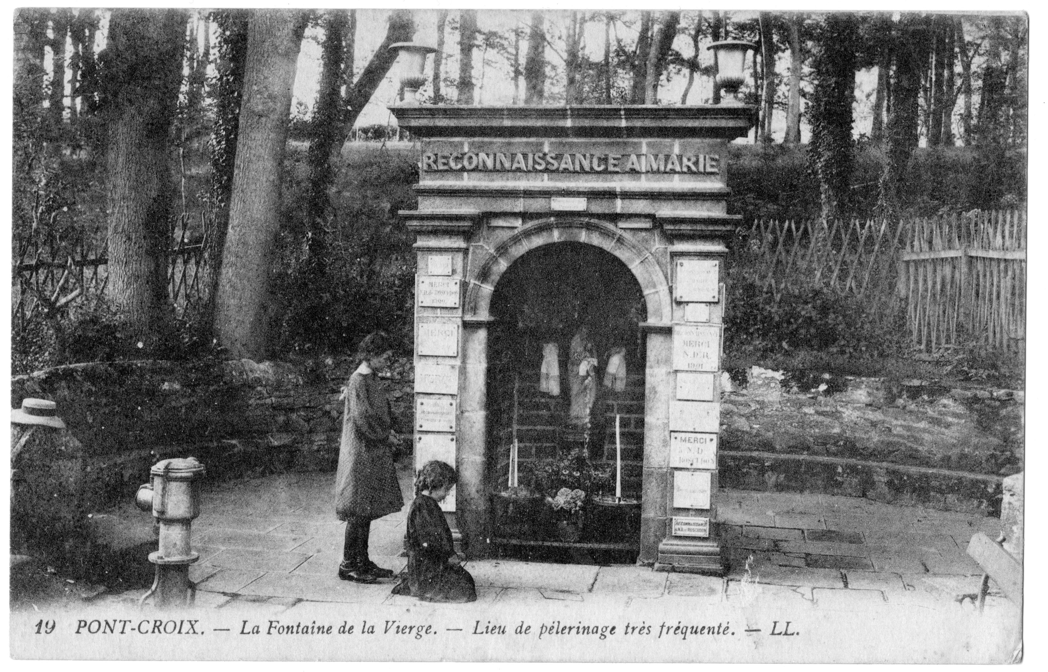 Fontaine de dévotion Notre-Dame du Feunteun An Itron Maria vers 1900. (Reproduction Carte Postale)Immatriculation
