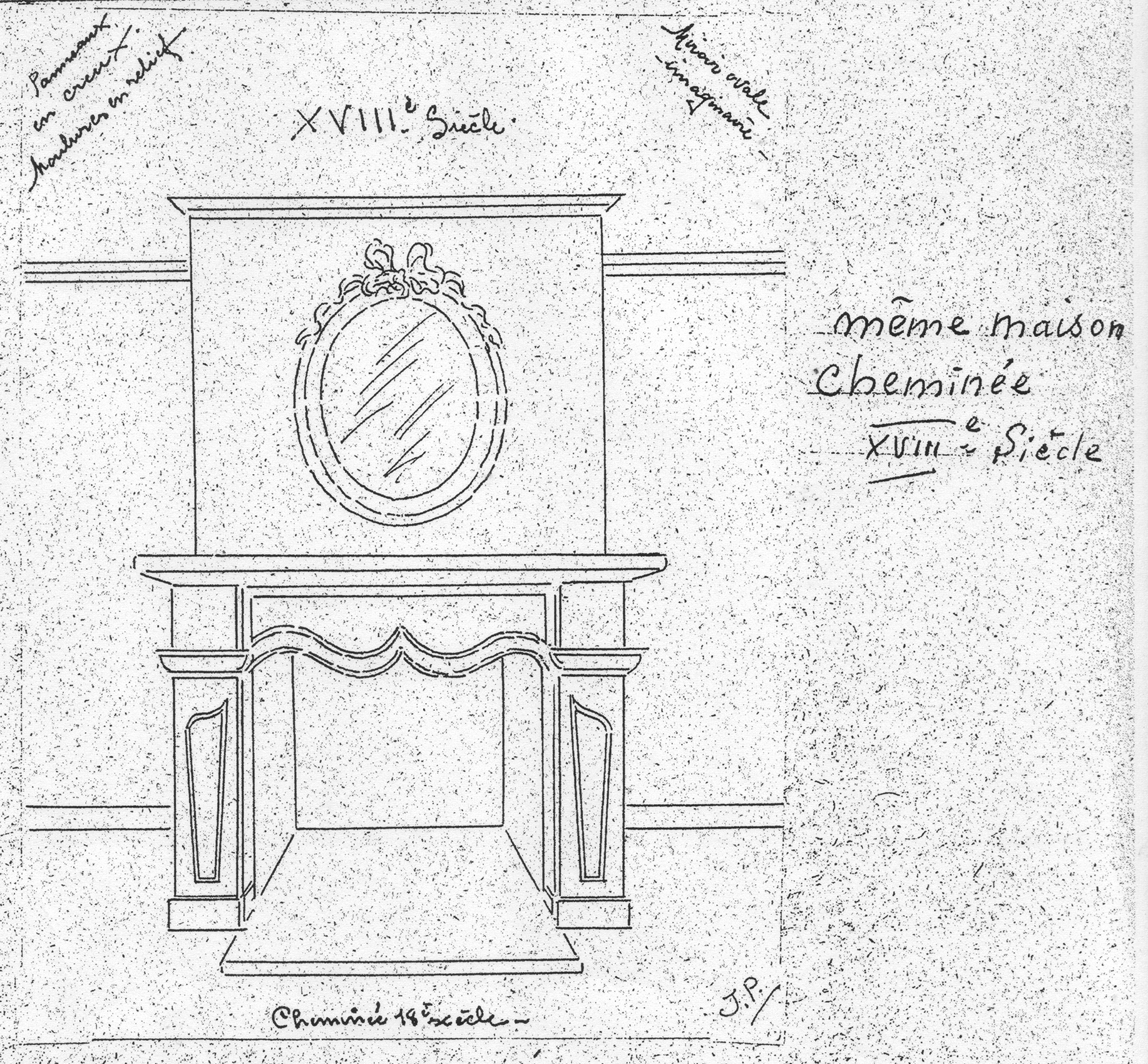 Cheminée. Reproduction dessin Jeanne Pennamen début 20e siècle.Immatriculation