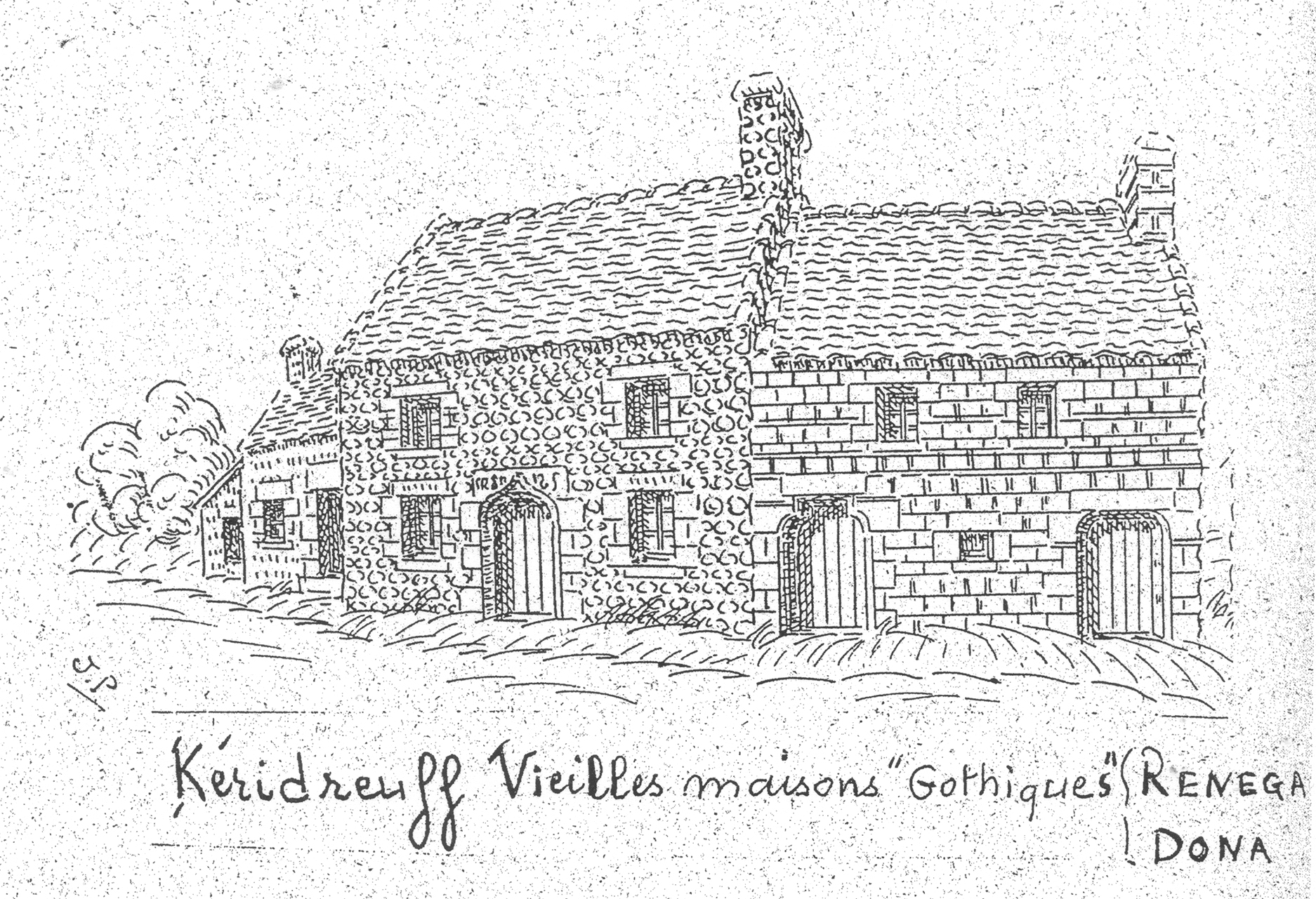 Maisons 1 et 2, élévations nord. Reproduction dessin Jeanne Pennamen, début du 20e siècle.Immatriculation