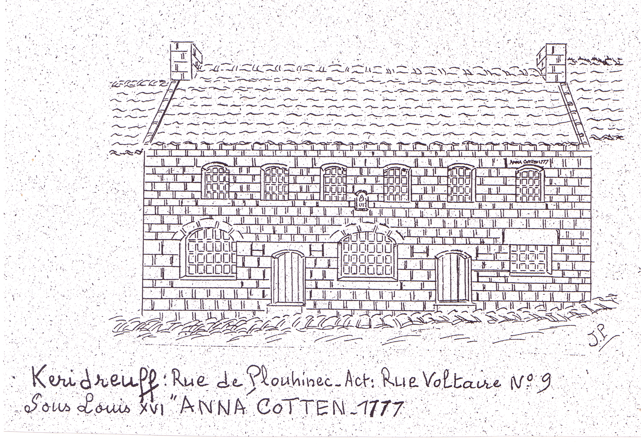Elévation sud. Reproduction dessin Jeanne Pennamen, début du 20e siècle.Immatriculation