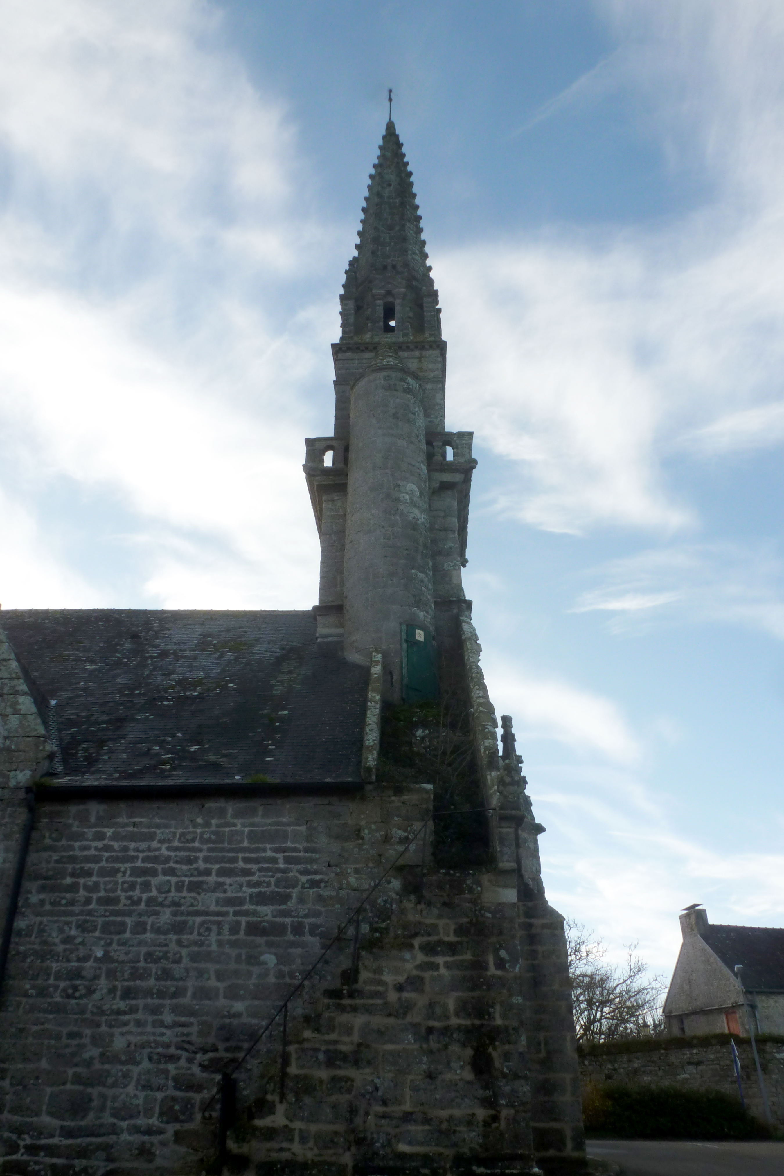 Clocher, tour cylindrique et escalier du rampant, vue prise du nord. (2020)Immatriculation