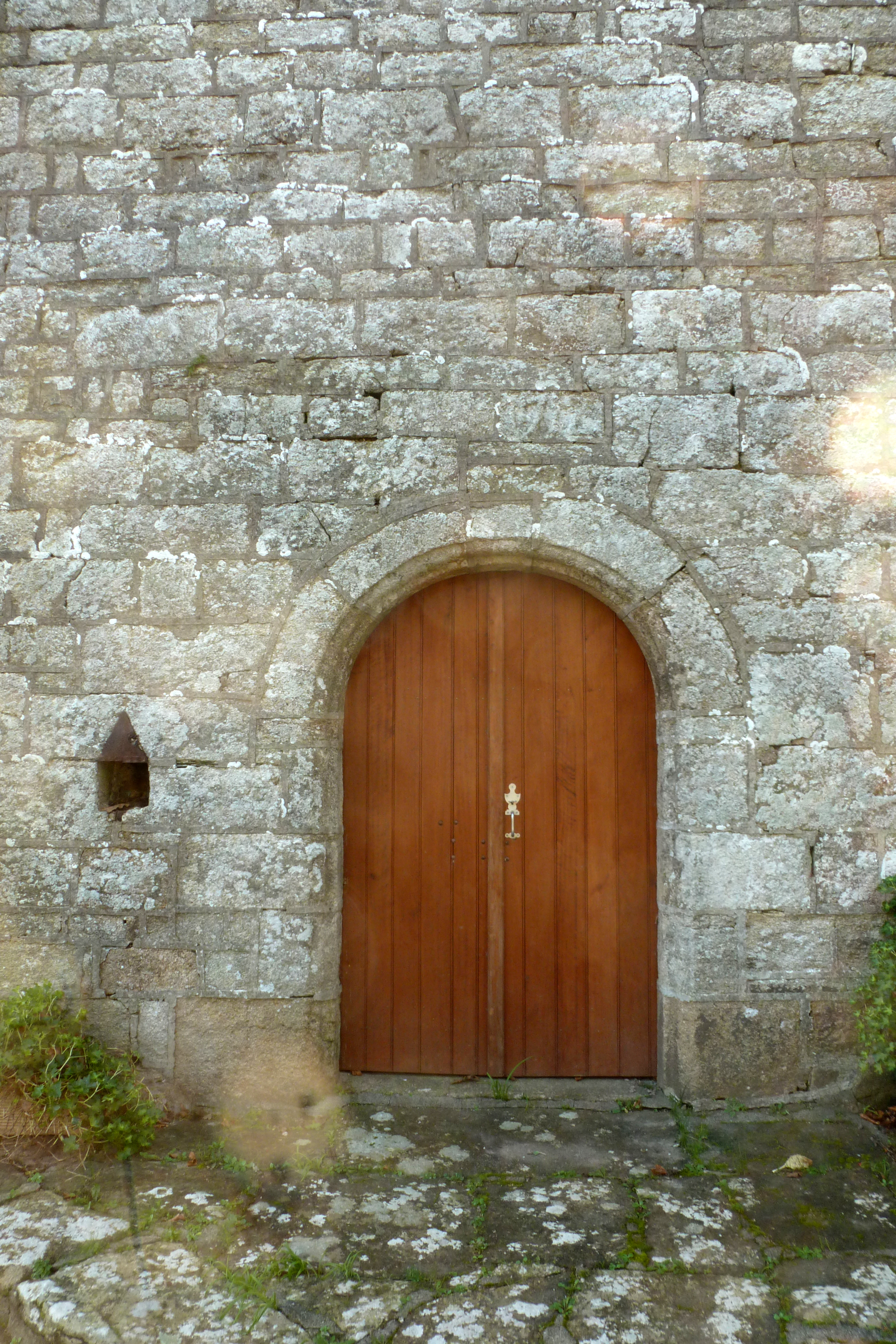 Elévation ouest, détail de la porte et pierre datée 1718. (2020)Immatriculation