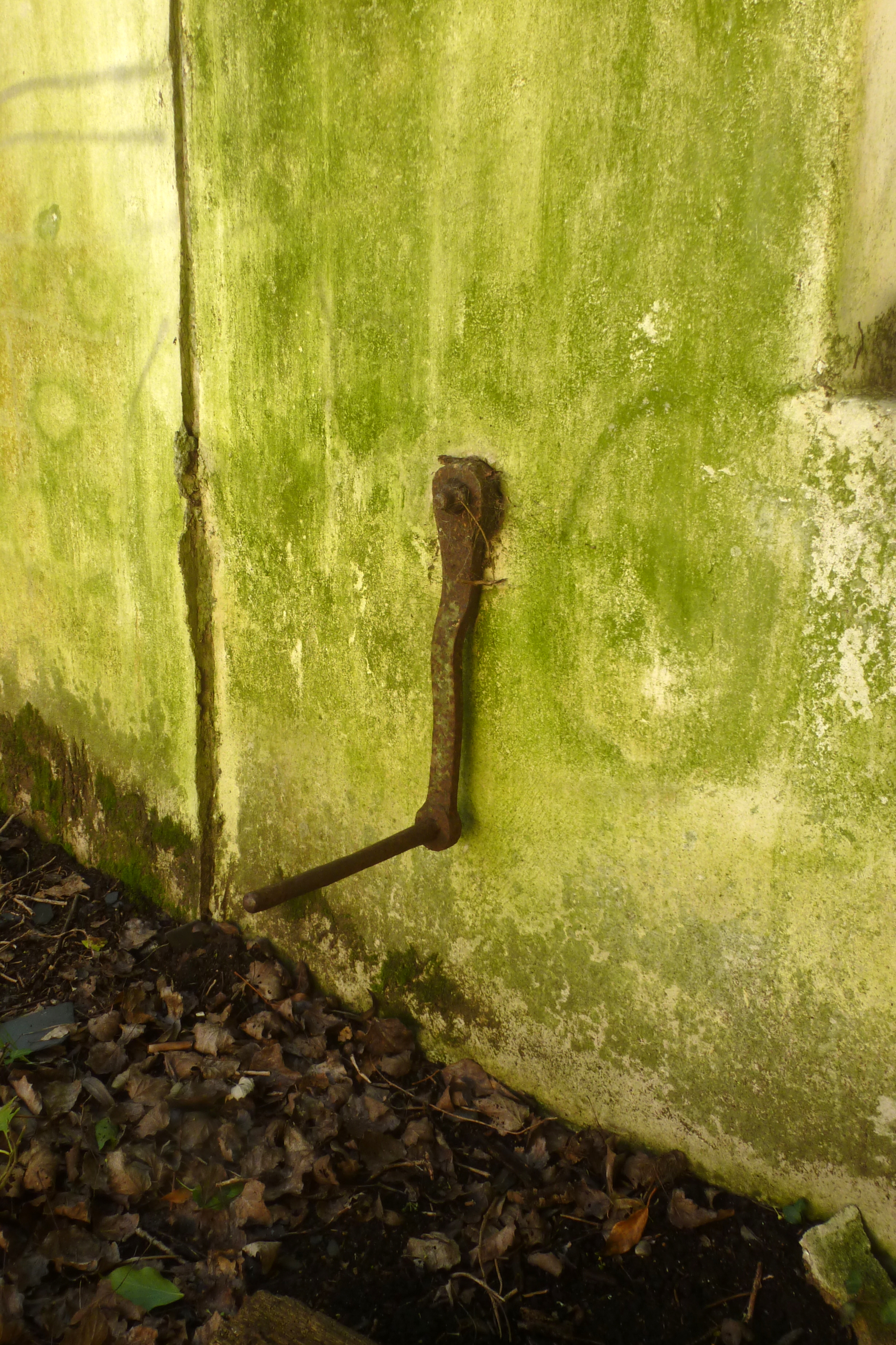 Logis (intérieur), partie ouest, levier de la vanne. (2020)Immatriculation