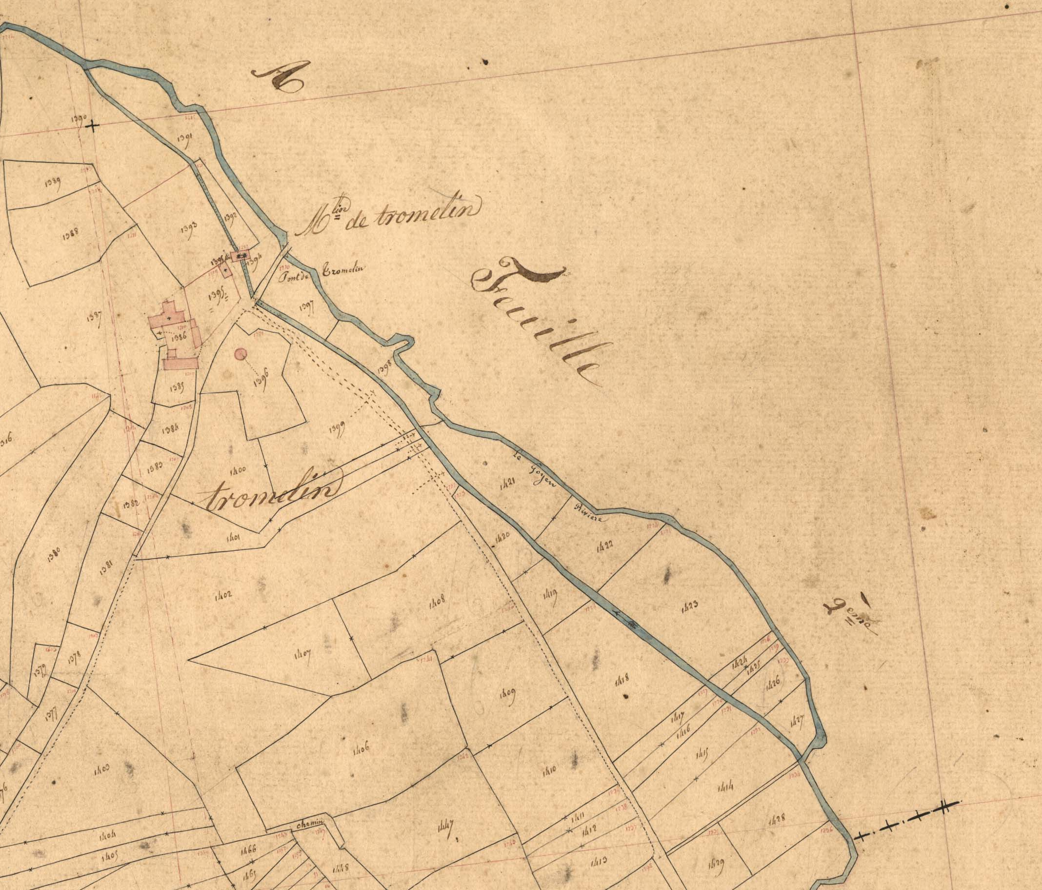 Manoir et moulin de Tromelin (et bief). Section B 2 du Bourg du cadastre ancien de la commune de Mahalon, 1836.Immatriculation