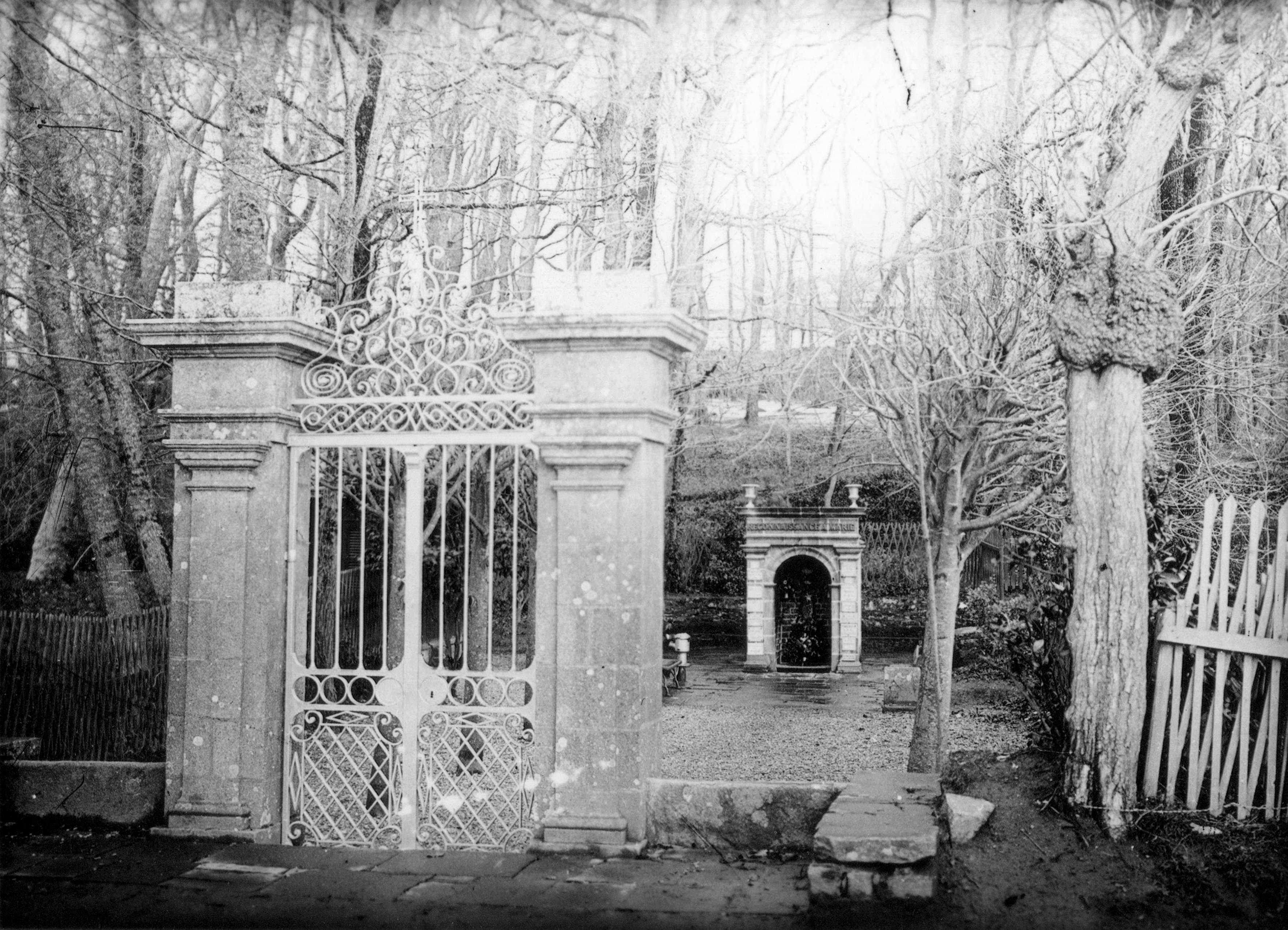 Vue de situation prise de la route. Reproduction plaque de verre début 20e siècle.Immatriculation