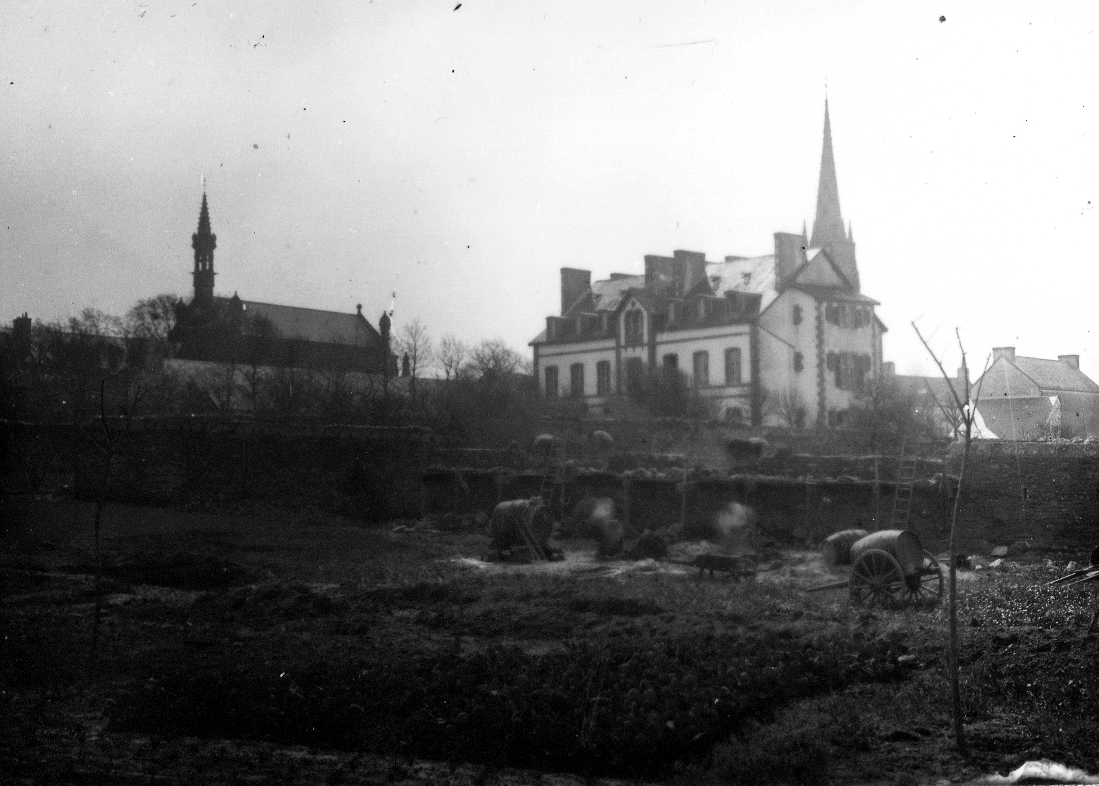 Vue générale prise du nord-ouest au début du 20e siècle. Reproduction plaque de verre.Immatriculation