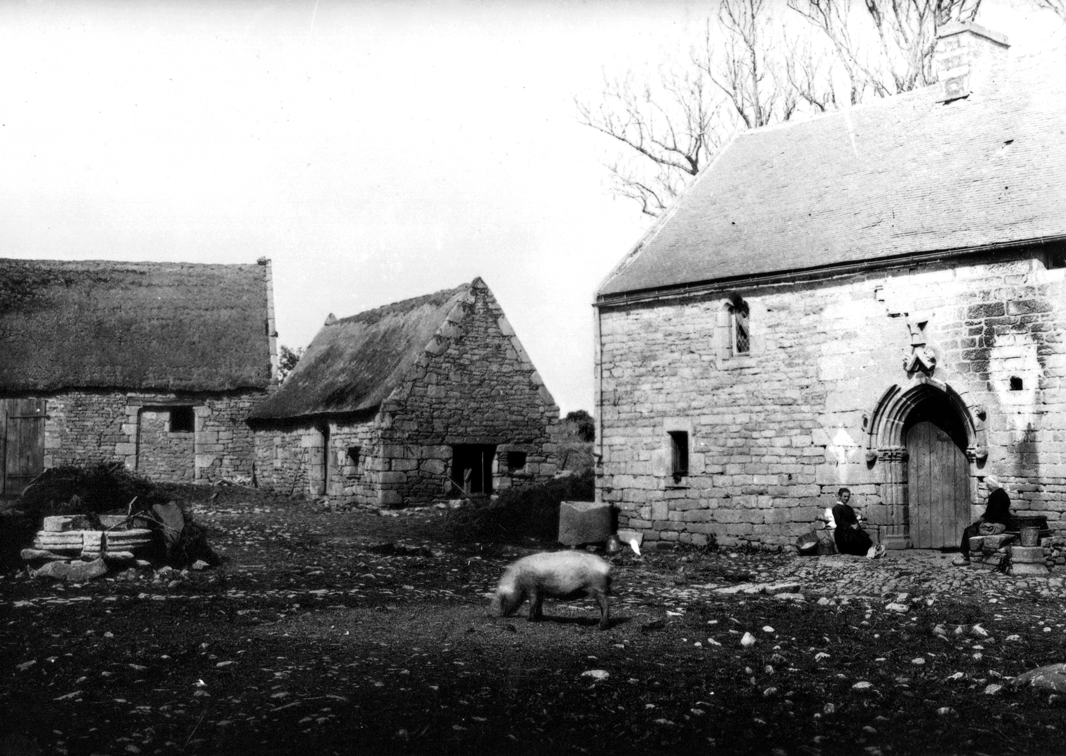 Nord de la cour vers 1900 (la maison neuve n'est pas encore bâtie). Reproduction plaque de verre.Immatriculation