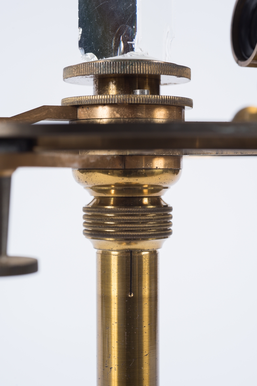 Détail de la plate-forme du goniomètre de Babinet sur laquelle est placé un prismeImmatriculation