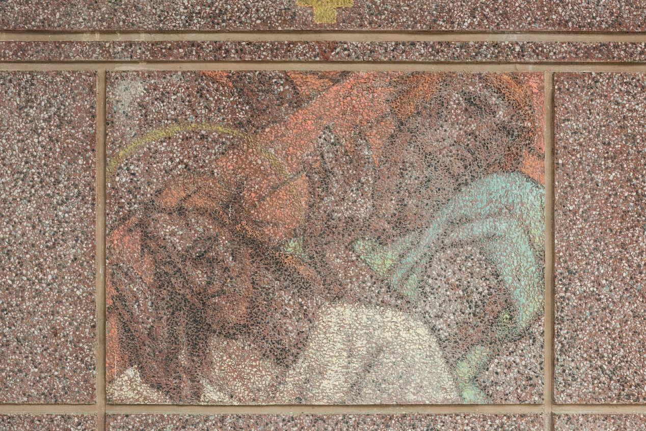Chemin de croix, Théophile Lemonnier, 1939 : V. Simon de Cyrène aide Jésus à porter sa croix.Immatriculation