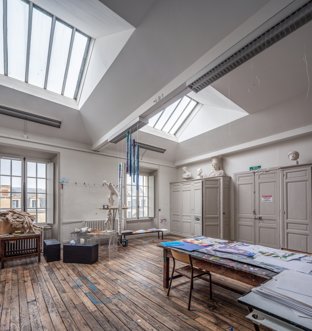 Ancienne salle de dessin, actuelle salle d'arts plastiques. Noter les verrières zénithales.Immatriculation