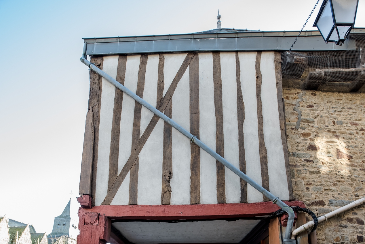 Le porche : pan de bois en grille avec une décharge oblique (vue depuis l'ouest)Immatriculation