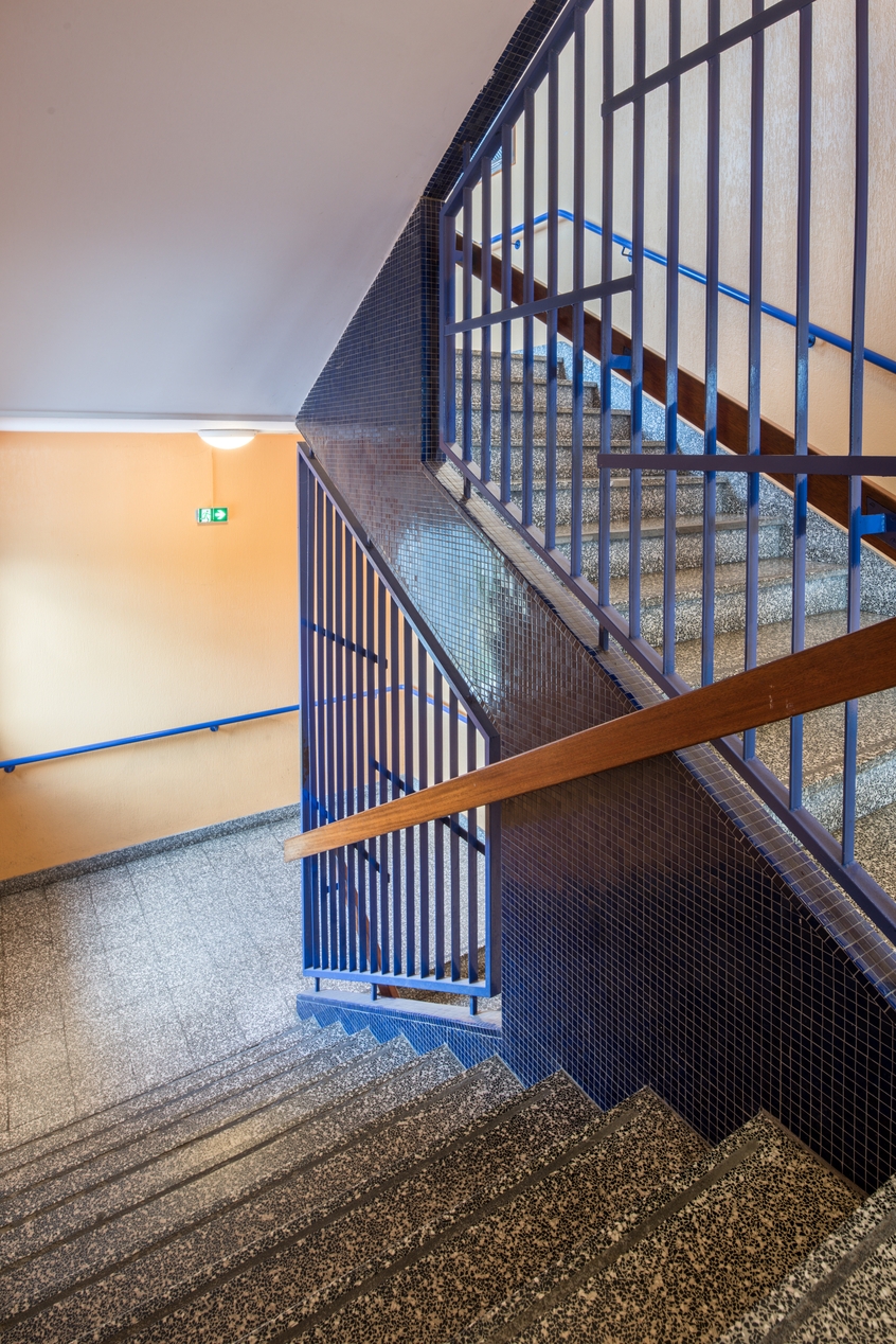 Cage d'escalier, bâtiment F, internat, actuellement internat externat. (Albert Hec et Roger Besnard, architectes, 1969)