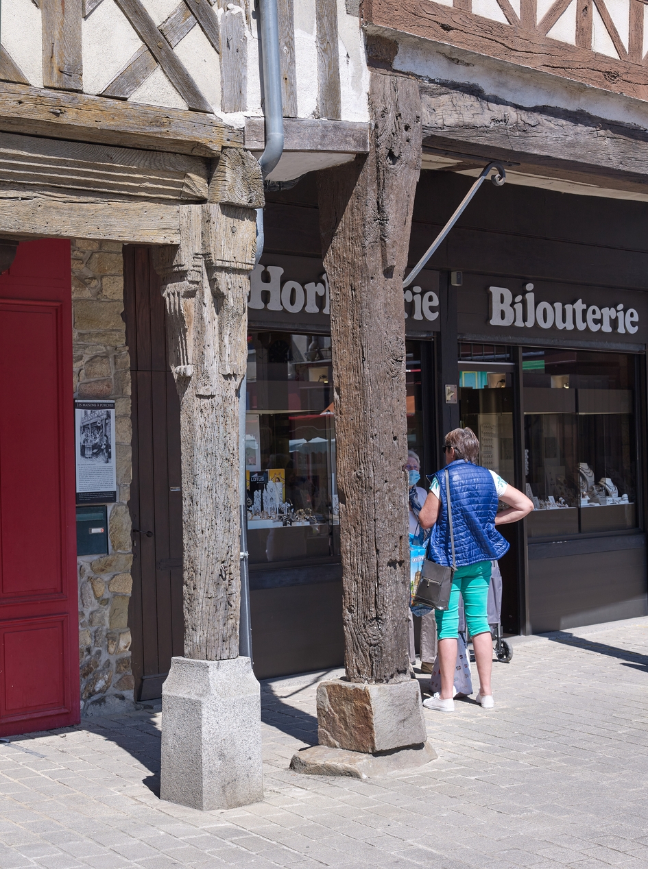 Poteaux corniers sur dés de pierre de la Maison Hunault (à droite) et la maison voisine (à gauche)Immatriculation