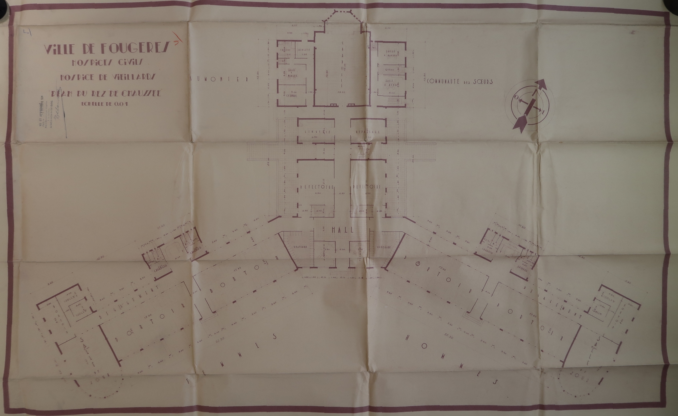 Archives municipales de Fougères : 5 MN 5 - 5.1. Hec [Albert], Jeu de plans de l'hospice de vieillards, 3 octobre 1936