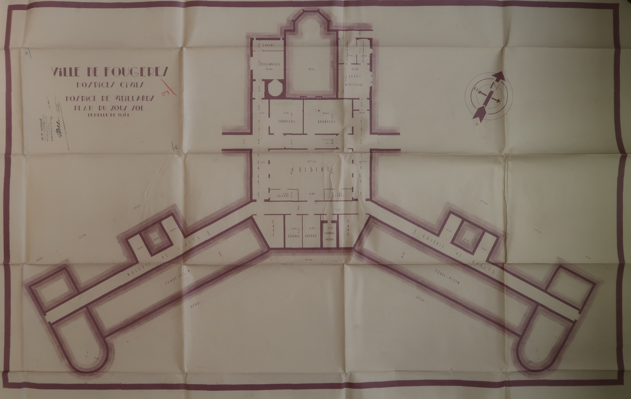 Hospice de vieillards. Plan du sous-sol. Albert Hec, architecte, 1936.Immatriculation