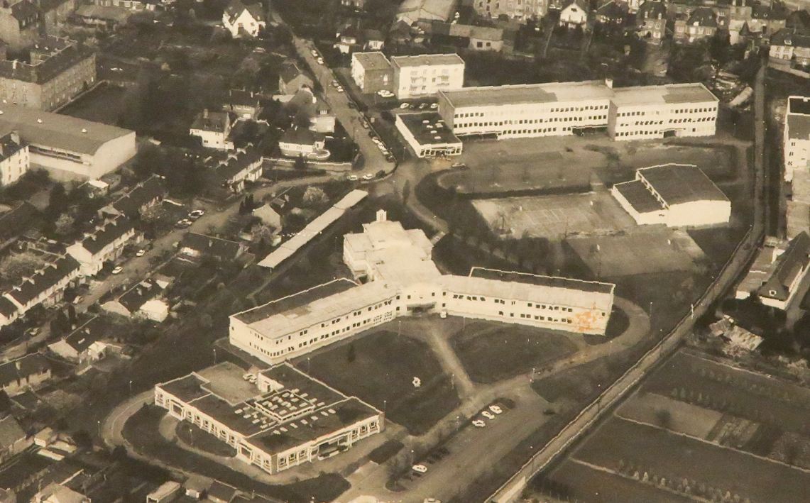 Lycée Jean Guéhenno de Fougères : Vue aérienne du lycée vers 1966