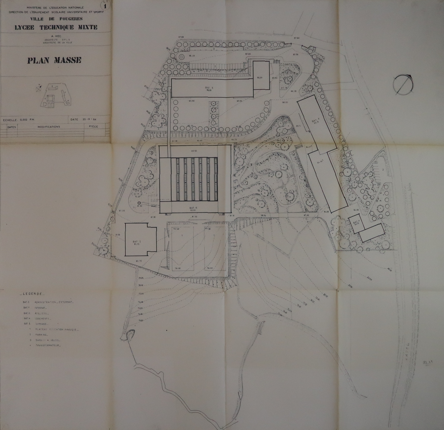Plan masse. Albert Hec, architecte. 1964.Immatriculation