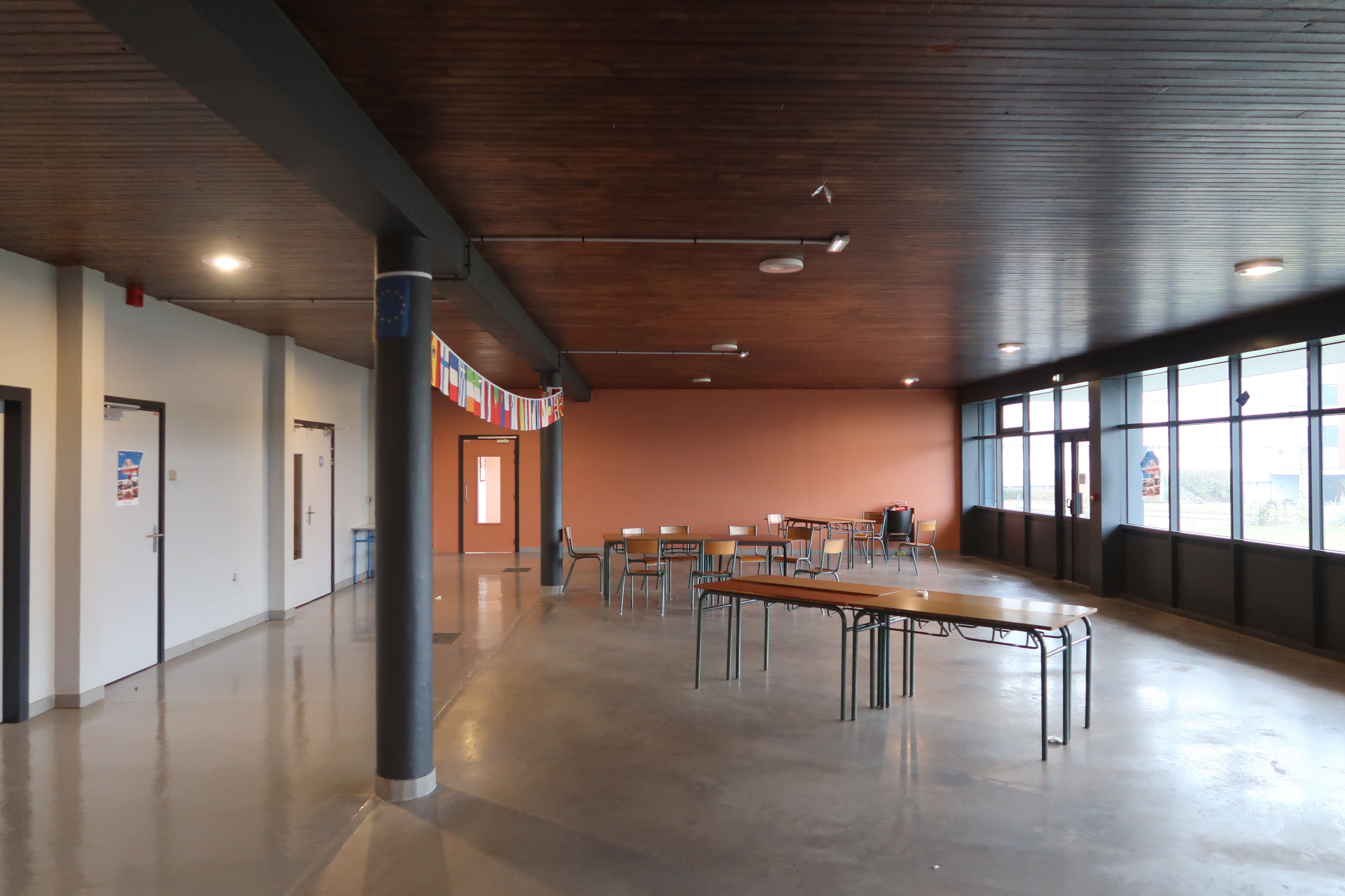 Bâtiment E, administration - externat : ancien préau transformé en hall.Immatriculation