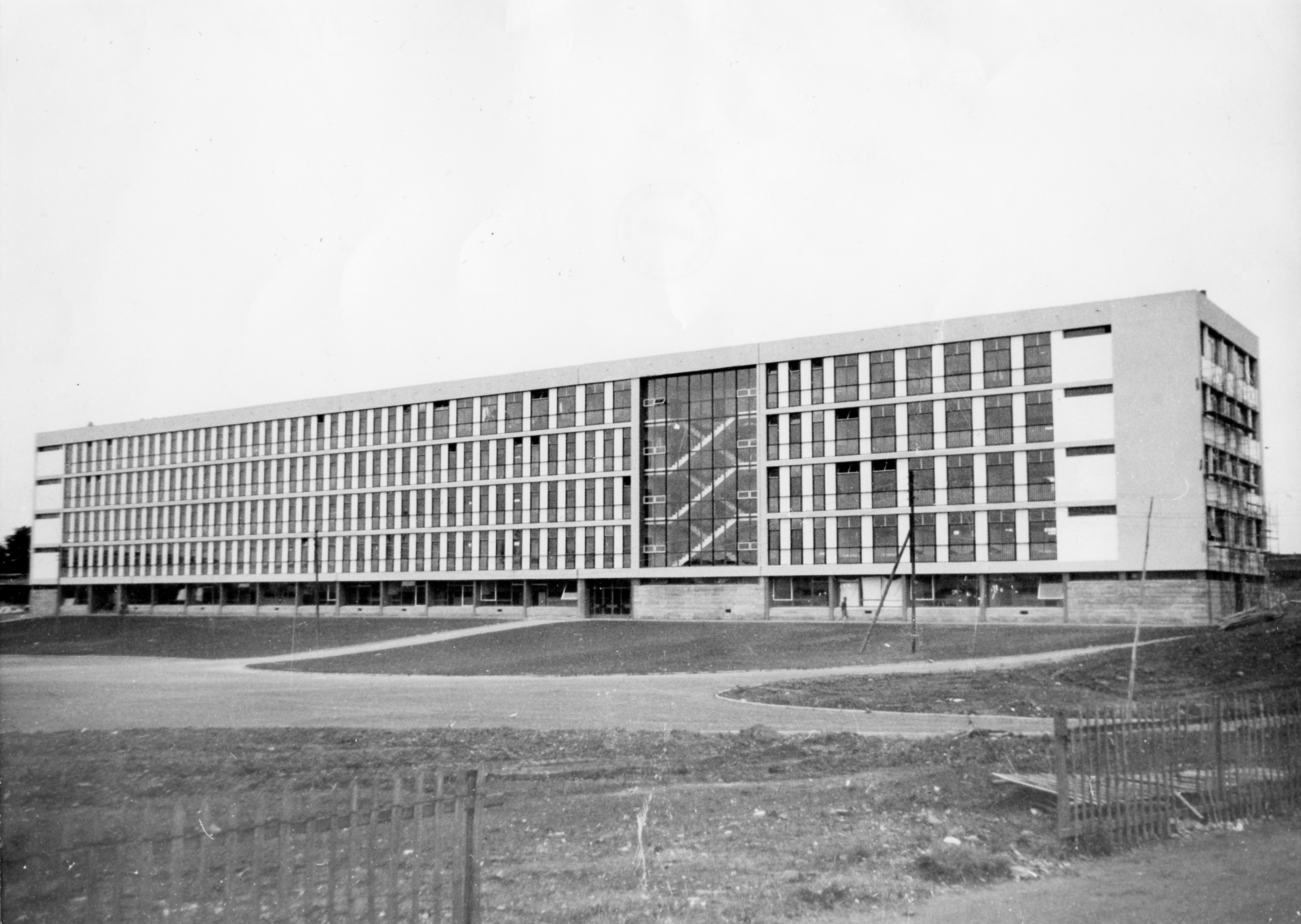 Façade ouest de l'internat de l'école nationale d'enseignement technique de Rennes. Ca. 1963.Immatriculation