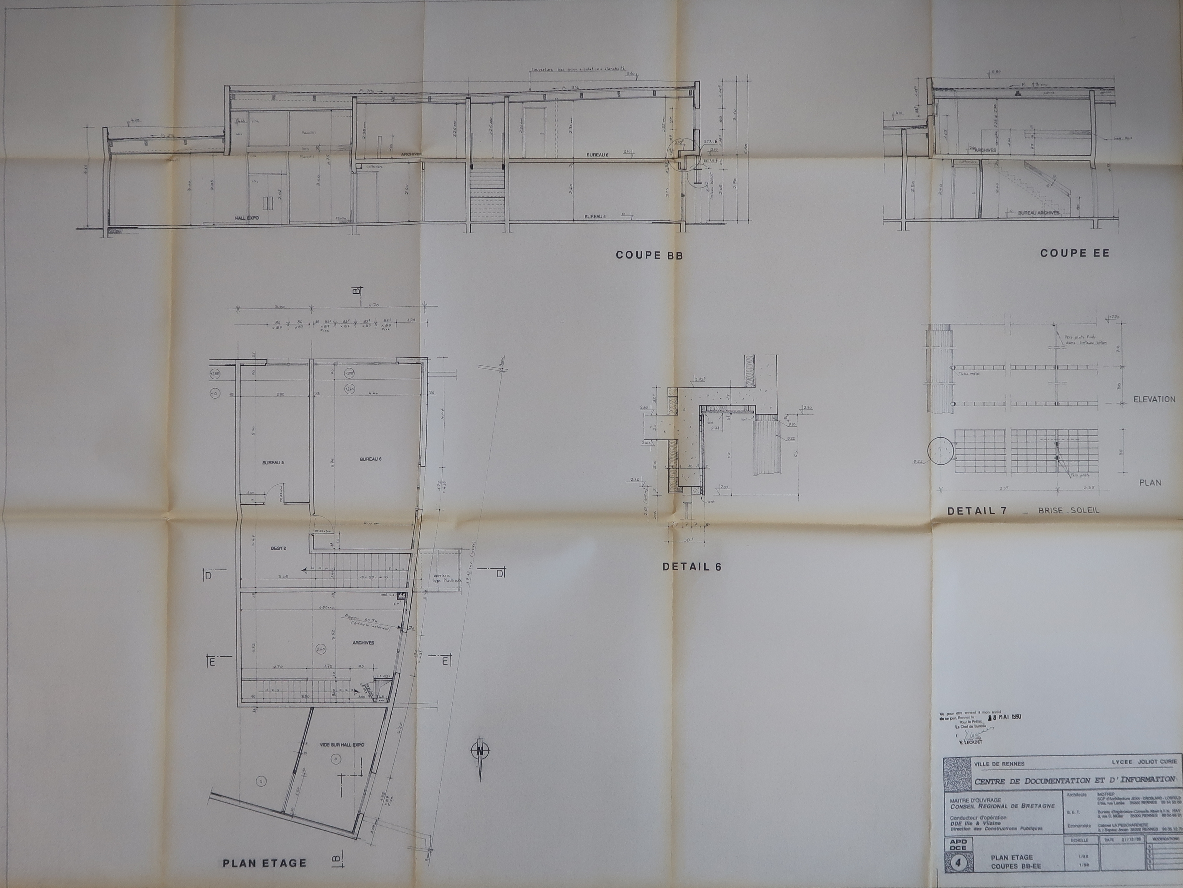 CDI : plan étage et coupes. Approuvé le 28 mai 1990. IMOTHEP (Didier Losfeld, Olivier Jean et Laurence Croslard, architectes).Immatriculation