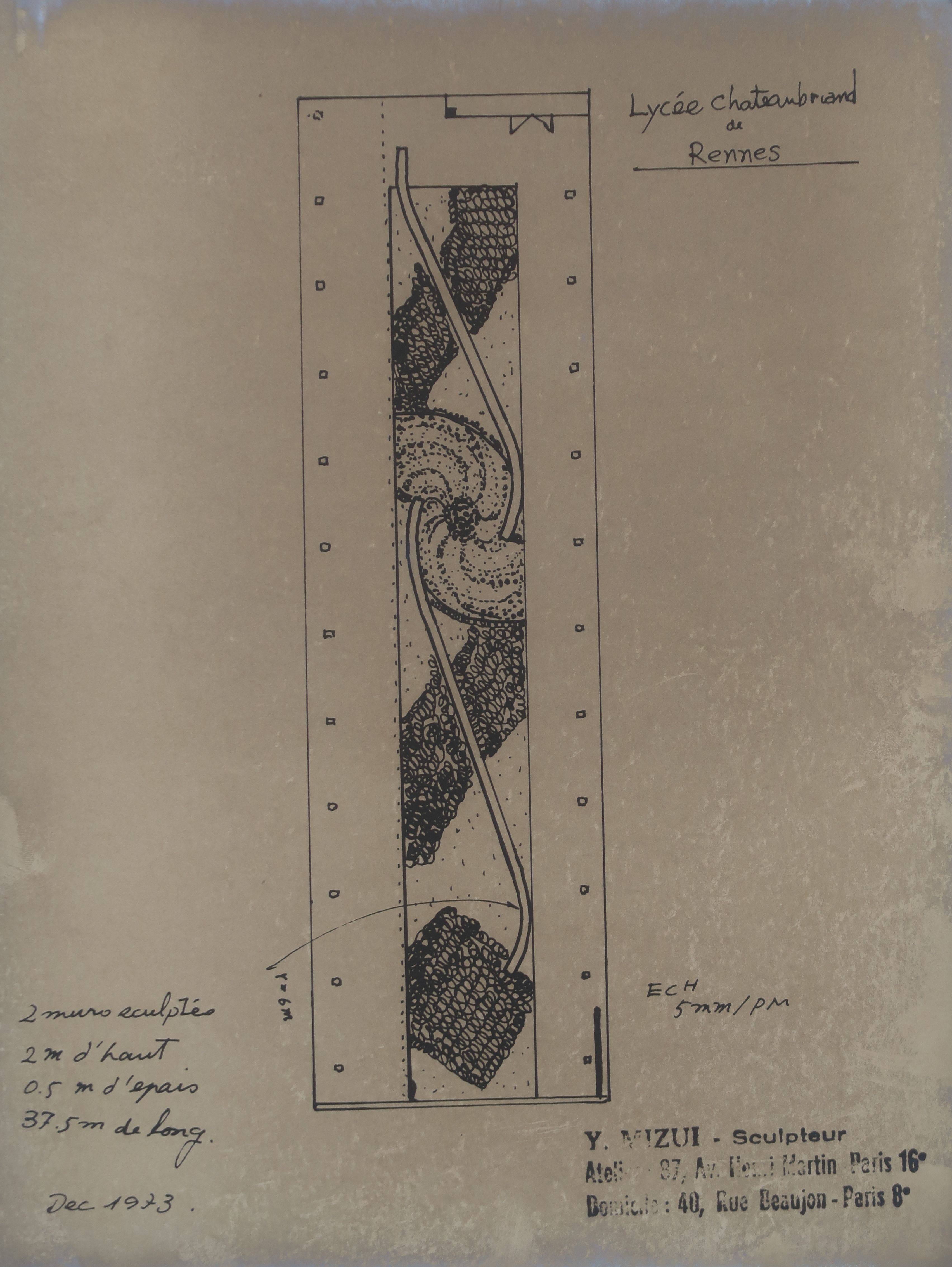 Yasuo Mizui, plan de la sculpture, décembre 1973.Immatriculation