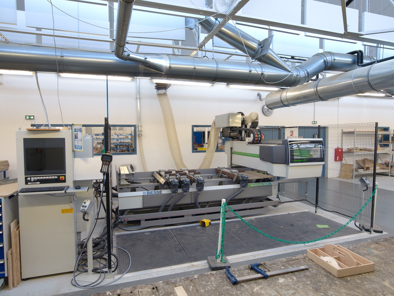 Atelier ébénisterie, machine à commande numérique.Immatriculation
