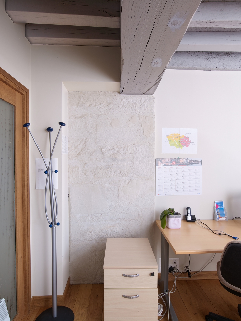 Détail du raccordement à l'intérieur entre la partie en pan de bois et la partie en maçonnerie.Immatriculation