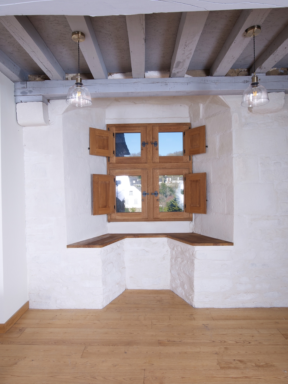 Fenêtre à coussièges dans le pignon nord au 1er étage.Immatriculation