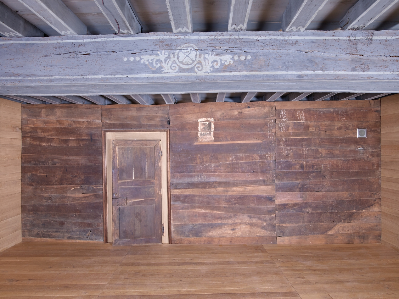 Cloison en bois du 2e étage.Immatriculation