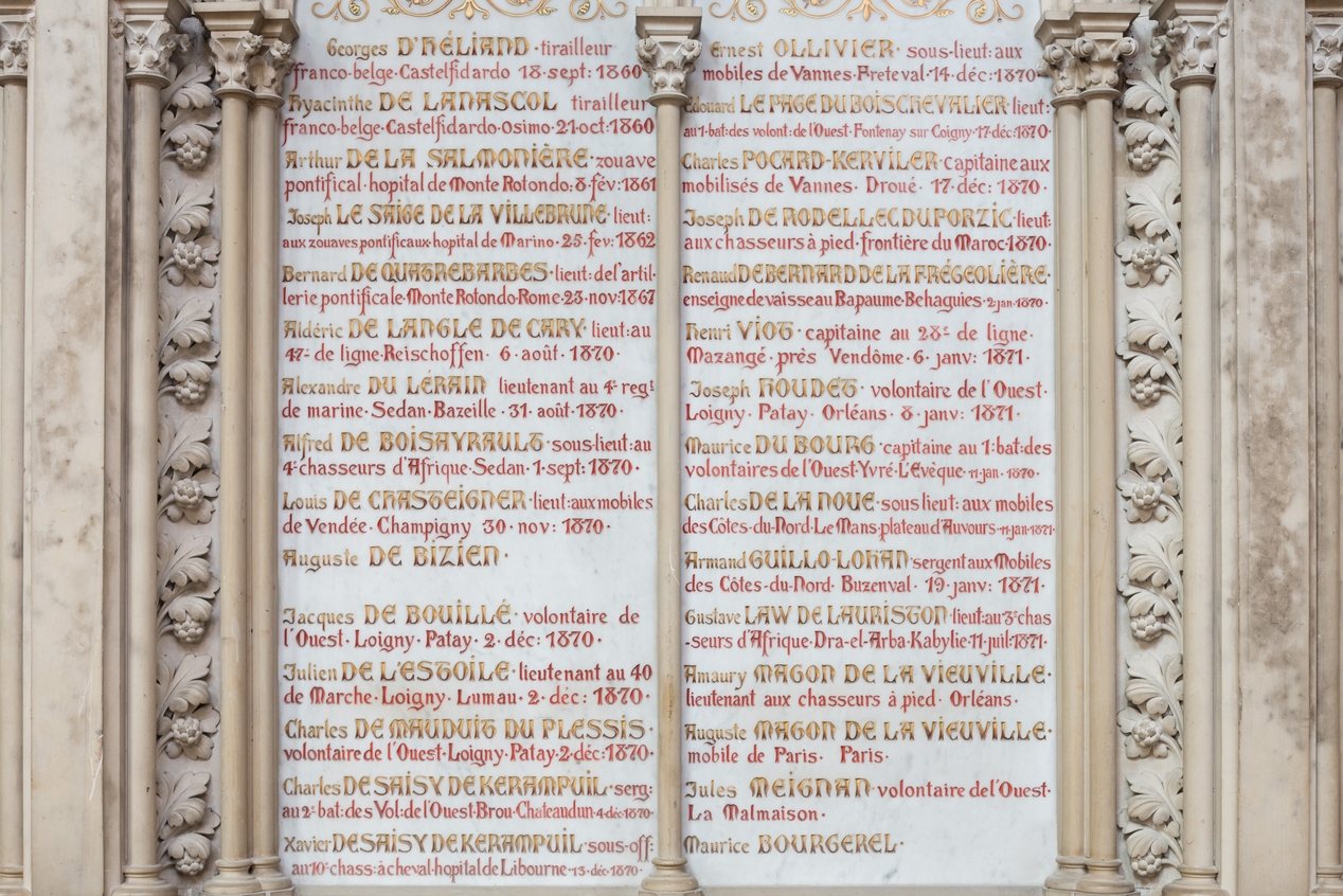 Monument à la mémoire des zouaves pontificaux, détail des nomsImmatriculation