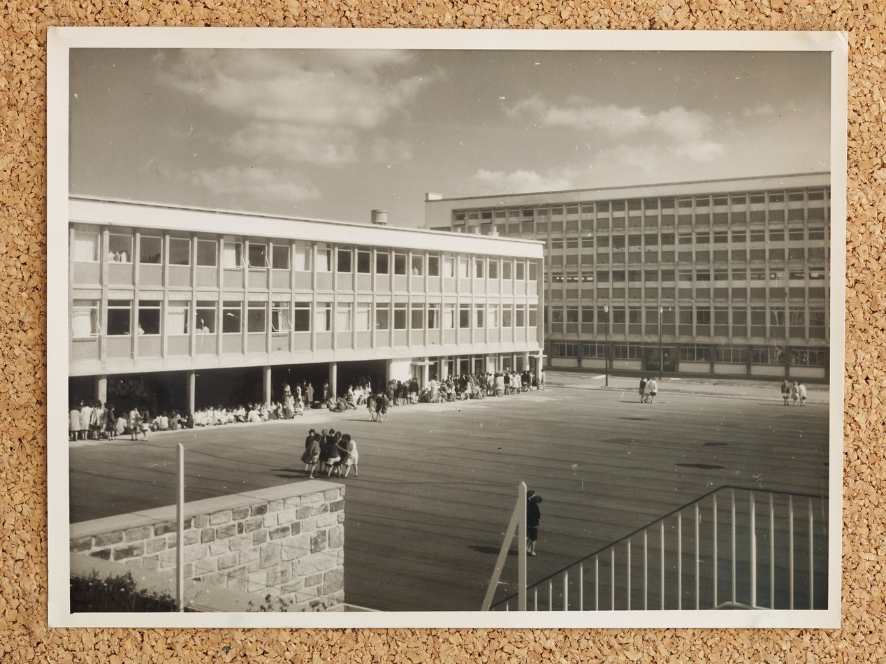 Archives du lycée Marie-Le-Franc : Album de photographies du centre d'apprentissage féminin à l'époque des baraques, sn, sd (ca. 1946-1961) et après son installation boulevard Léon Blum (ca.1961).