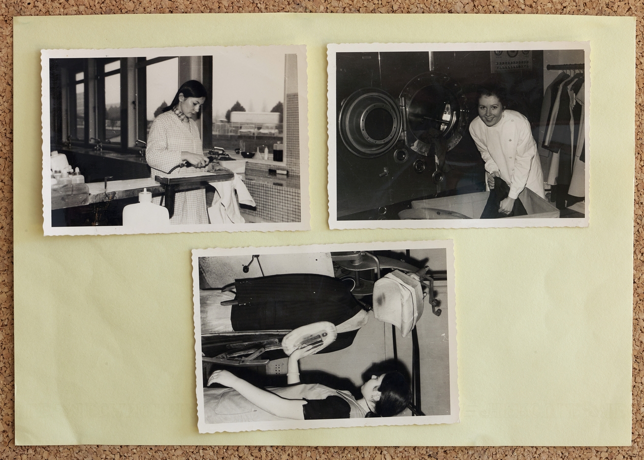 Archives du lycée Marie-Le-Franc : Album de photographies du centre d'apprentissage féminin à l'époque des baraques, sn, sd (ca. 1946-1961) et après son installation boulevard Léon Blum (ca.1961).