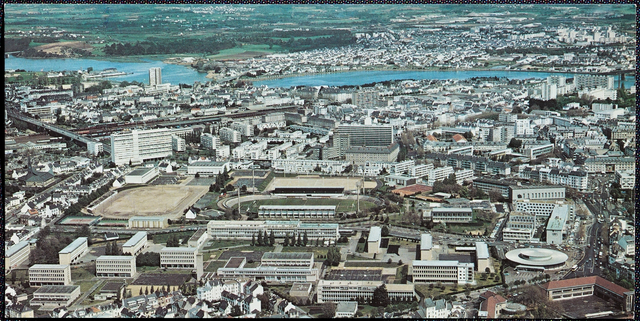 Carte postale. Vue aérienne prise du sud-ouest vers 1967. Archives du lycée.Immatriculation