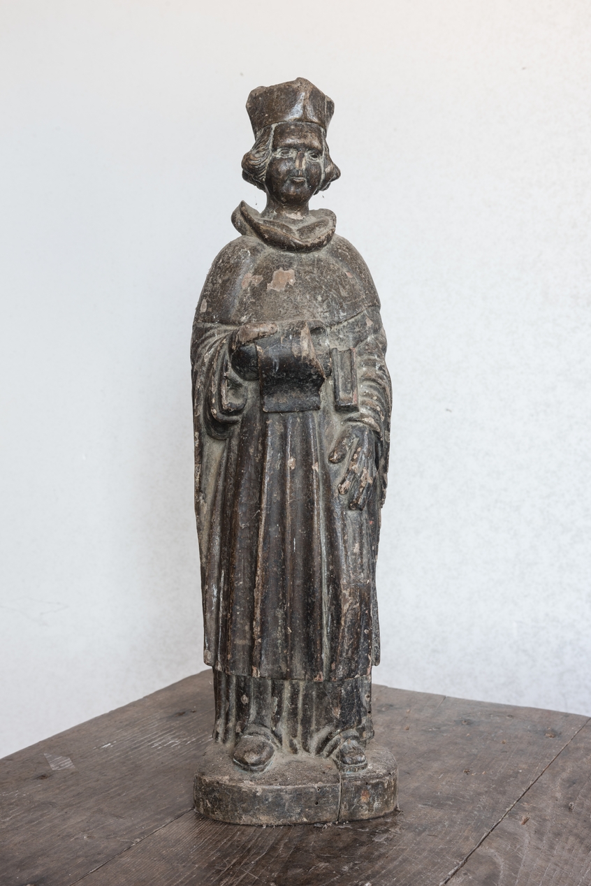 Vue générale : statuette représentant un ecclésiastique (saint Yves?).Immatriculation