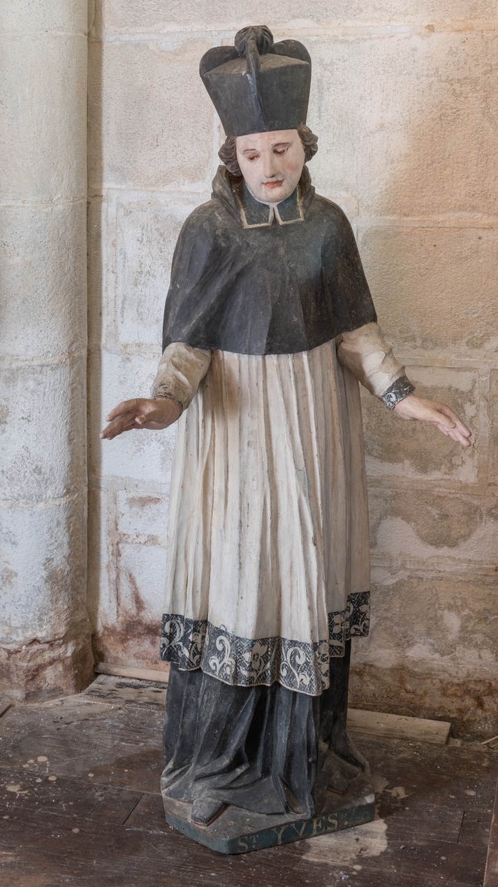 Vue générale : statue de saint Yves.Immatriculation