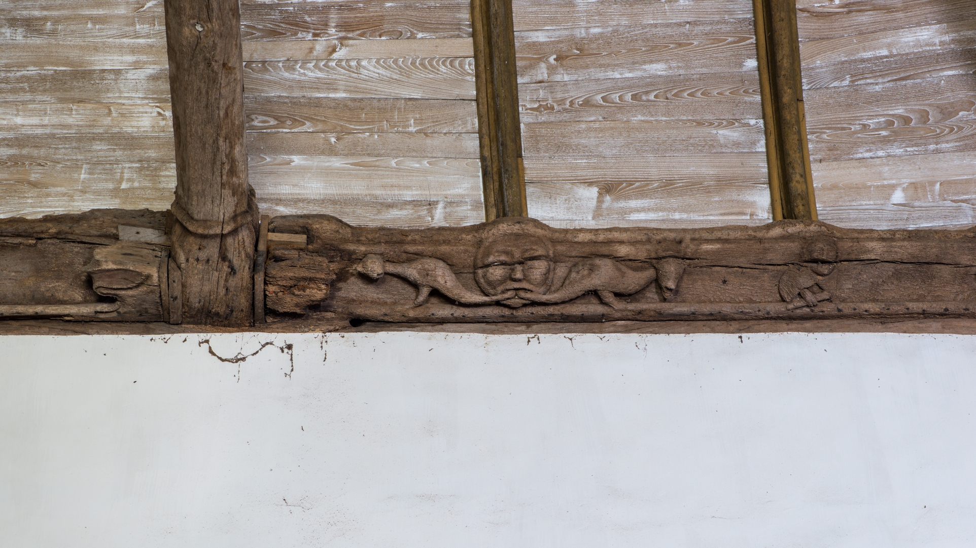 Vue de détail : sablière sur le mur sud de la chapelle.Immatriculation