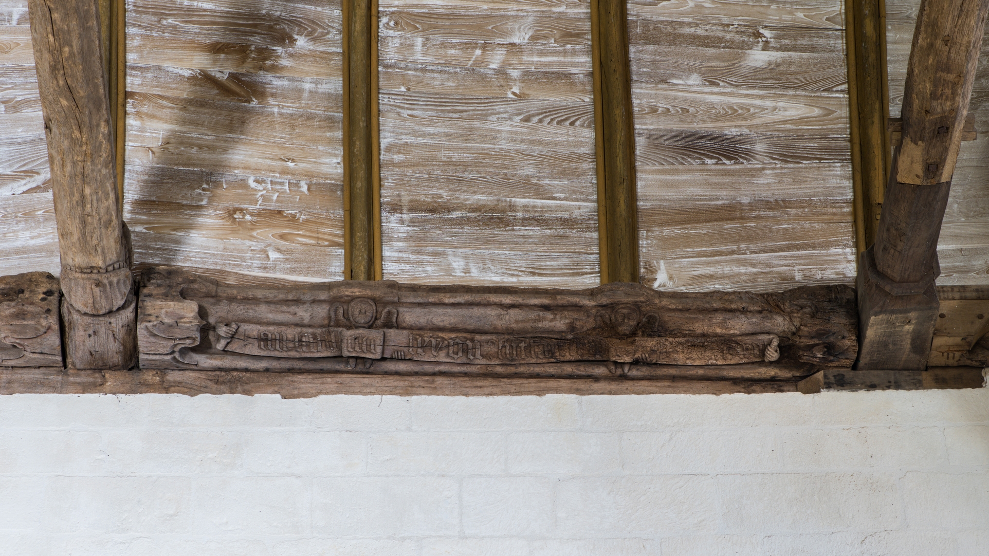Vue de détail : sablière sur le mur sud de la chapelle.Immatriculation