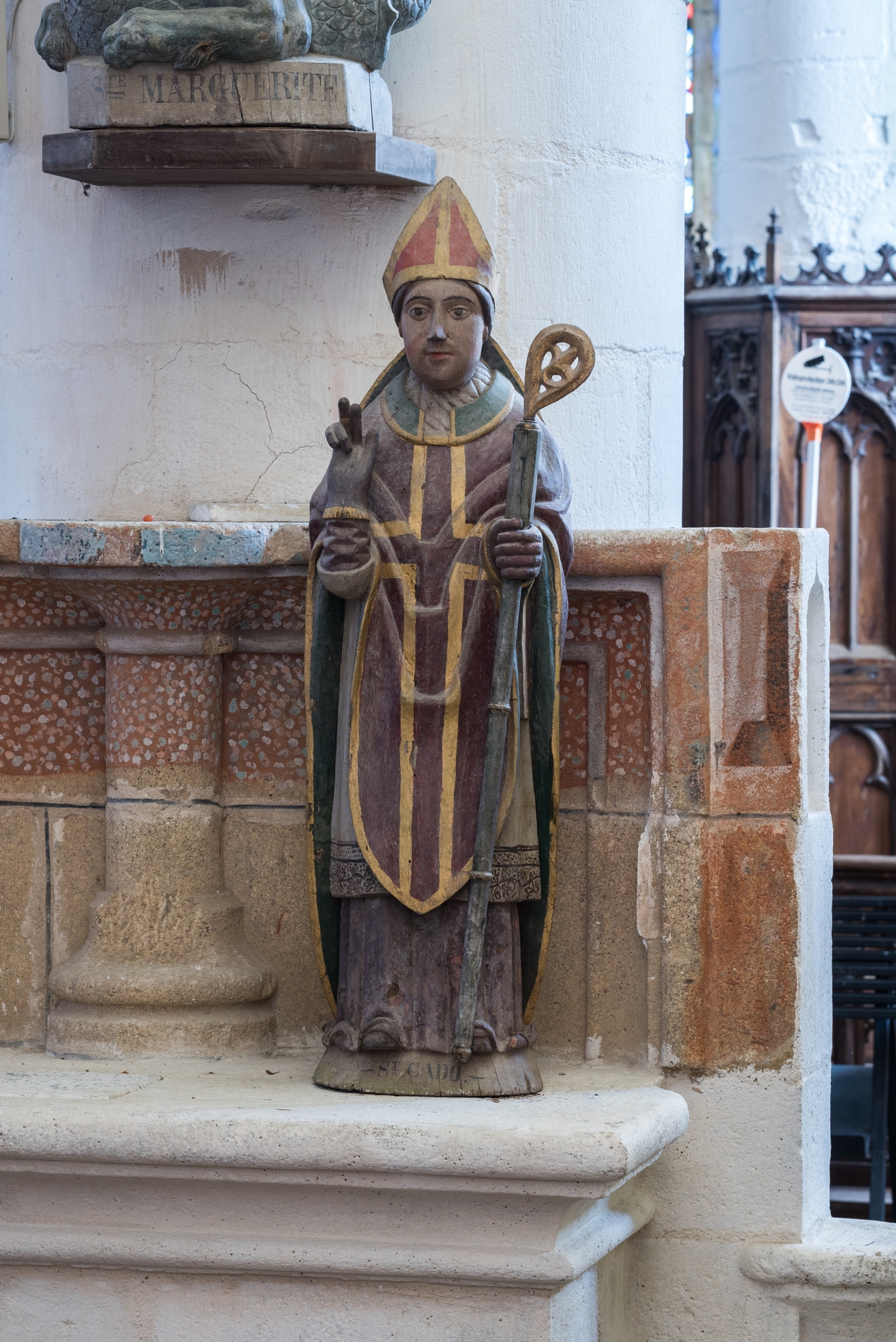 Vue d'ensemble : statue de saint Cado.Immatriculation