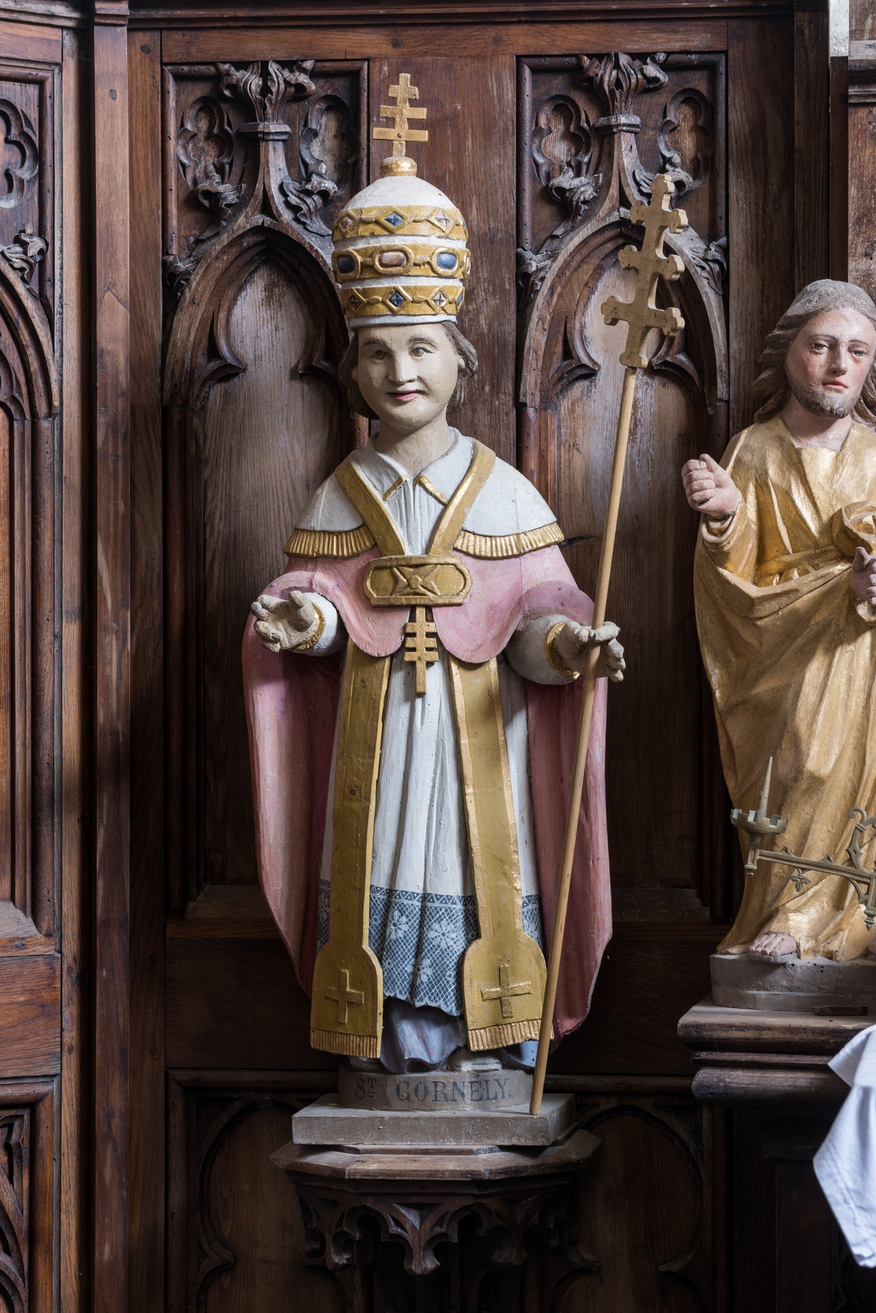 Vue d'ensemble : statue de saint Cornély.Immatriculation