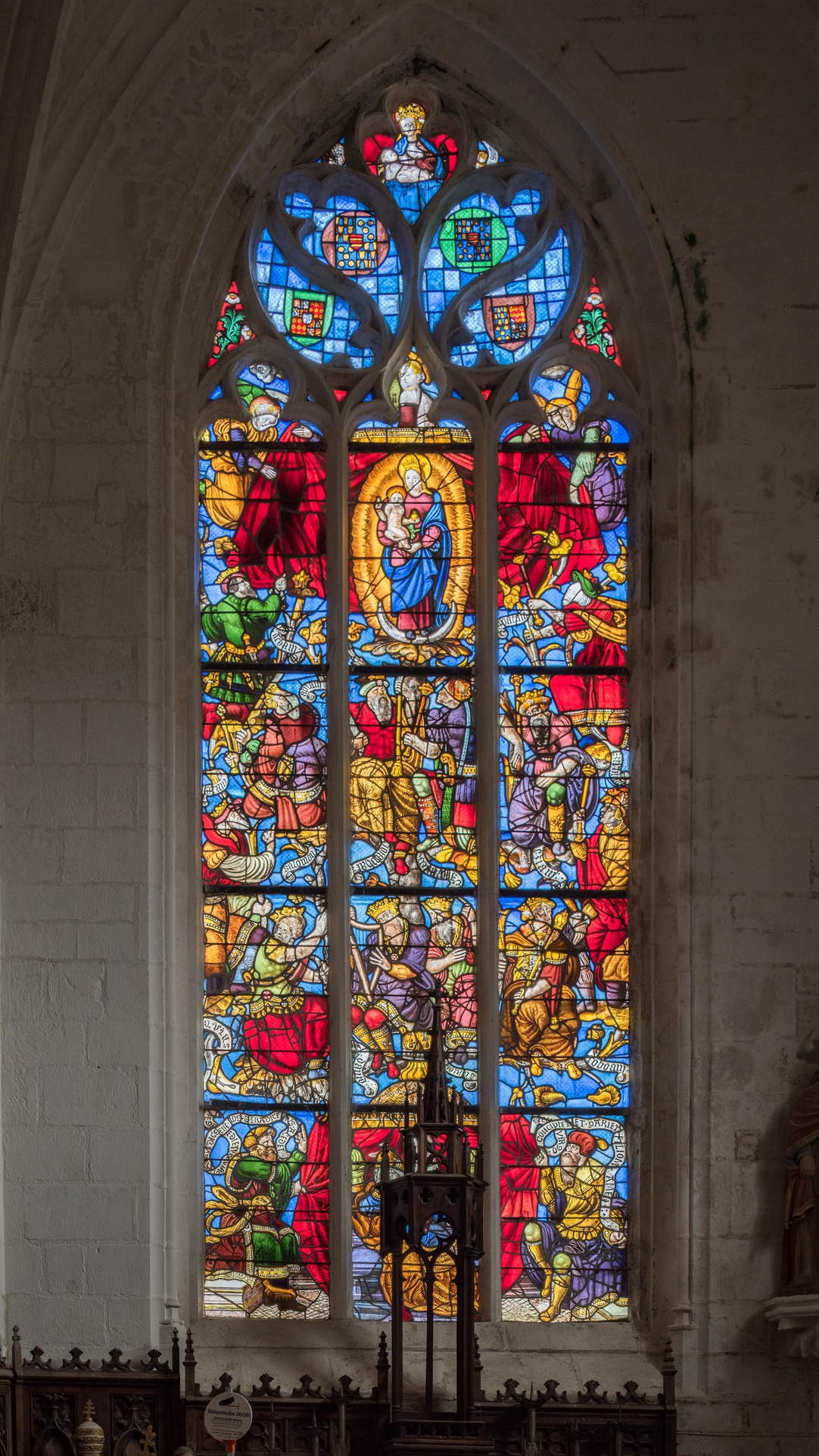Vue d'ensemble : verrière de la baie 6, représentant l'arbre de Jessé.Immatriculation