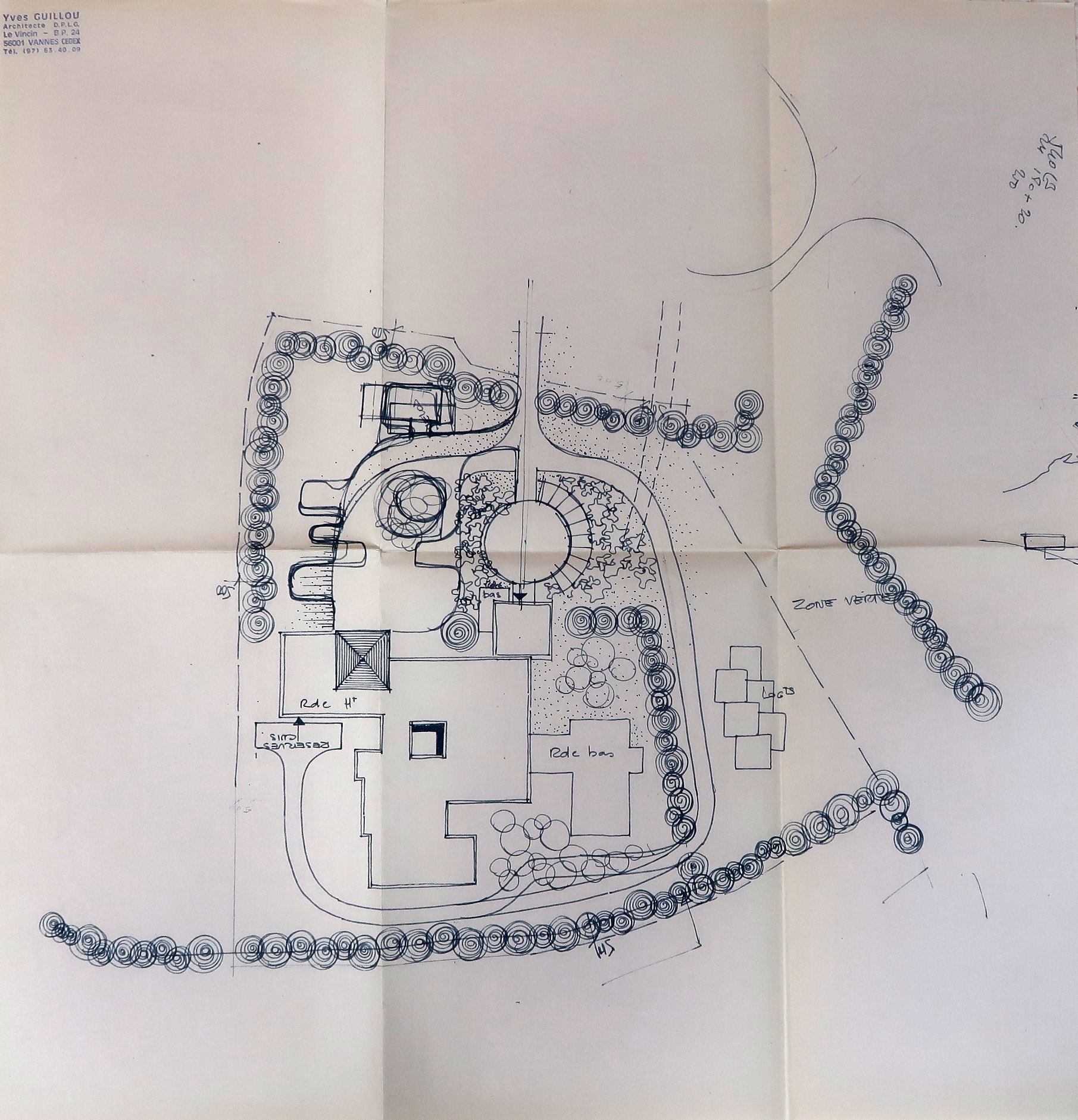 Archives municipales d'Auray : 1 W 2066. Guillou [Yves], Esquisses, plans, élévations et coupes, 1978.