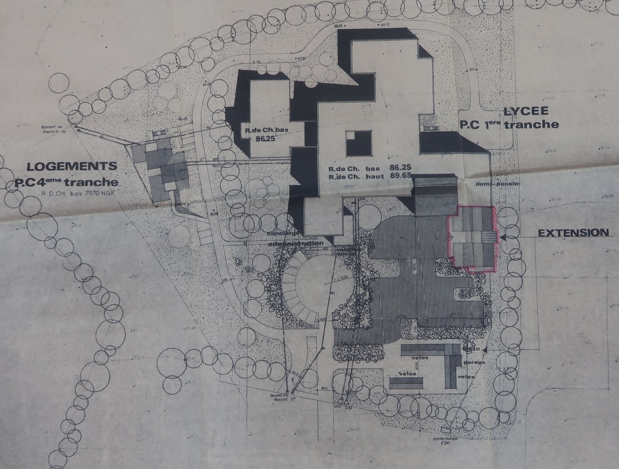 Archives municipales d'Auray : 1 W 2068. Guillou [Yves], Extension de 6 classes du lycée Benjamin Franklin, 1983