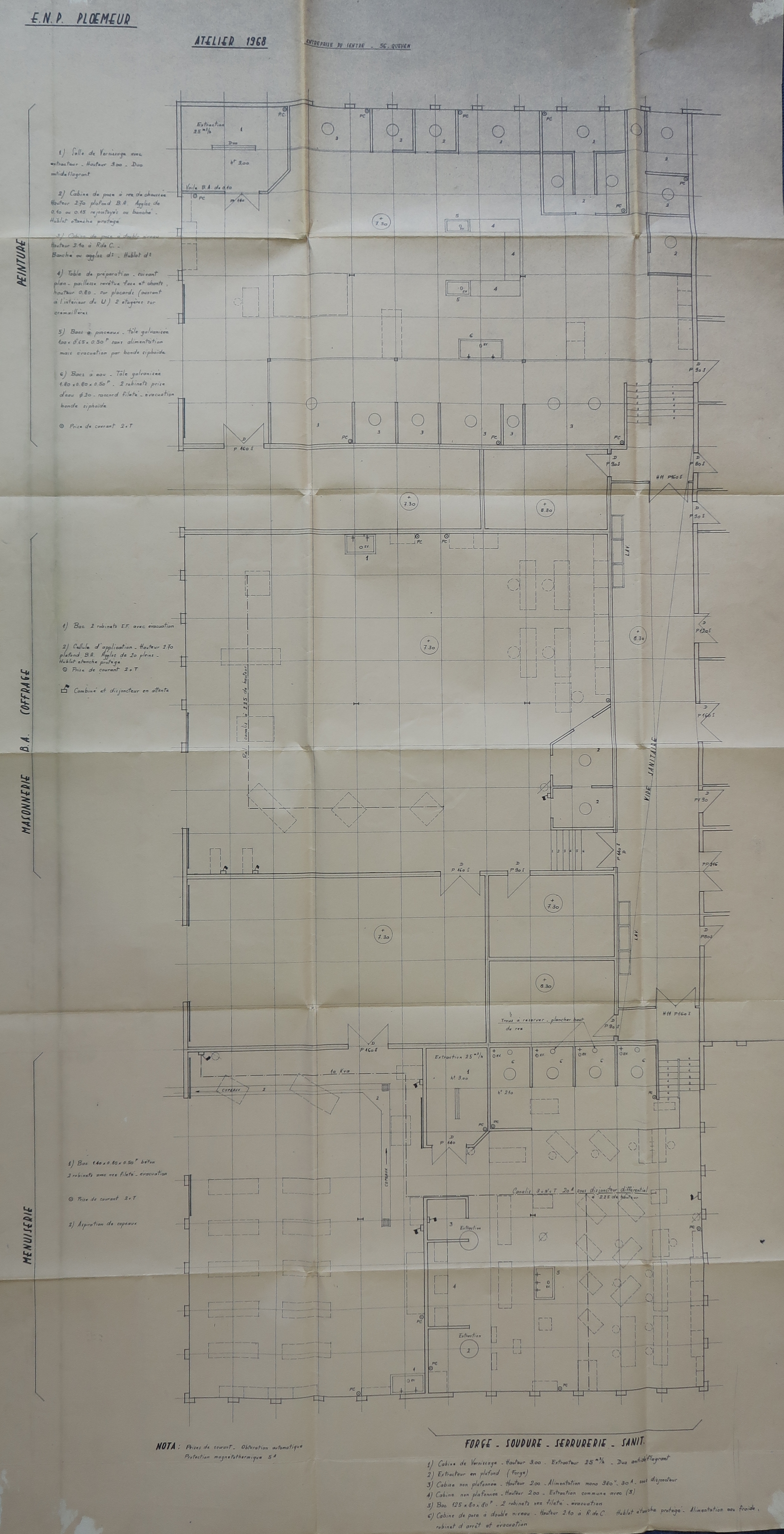 Atelier, 1968 : plan. Entreprise du Centre, Quéven.Immatriculation