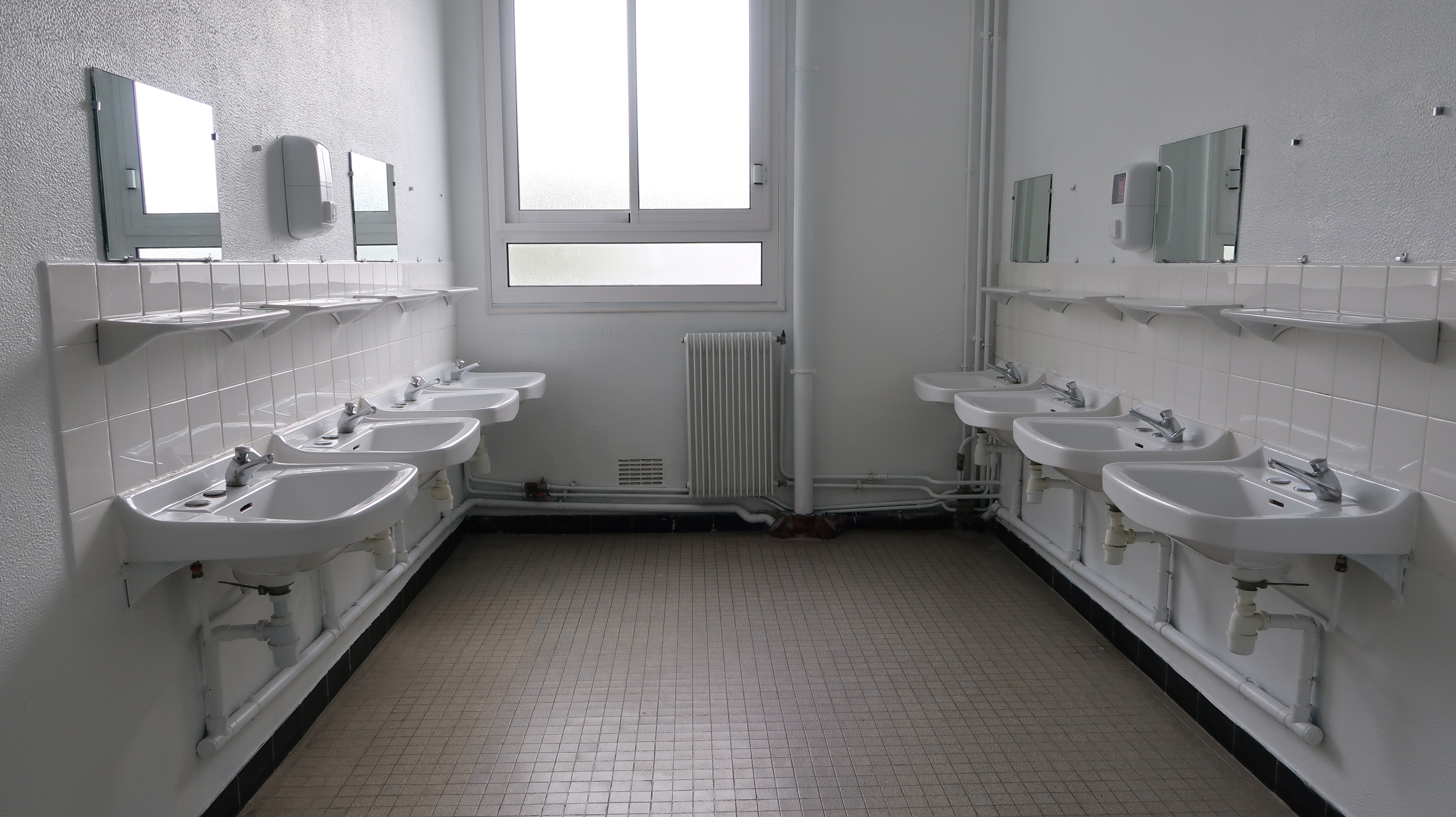 Lavabos, dans l'internat. Yves Guillou, architecte, 1969.Immatriculation