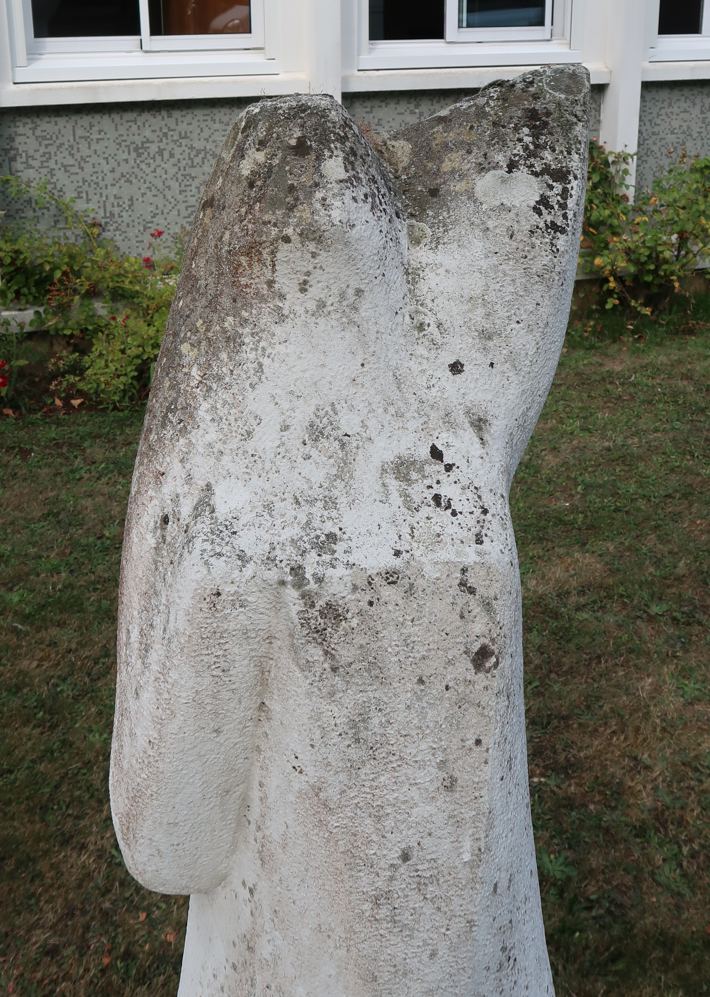 Sculpture en pierre de Chauvigny. Marie-Thérèse Pinto, 1972. Détail.Immatriculation