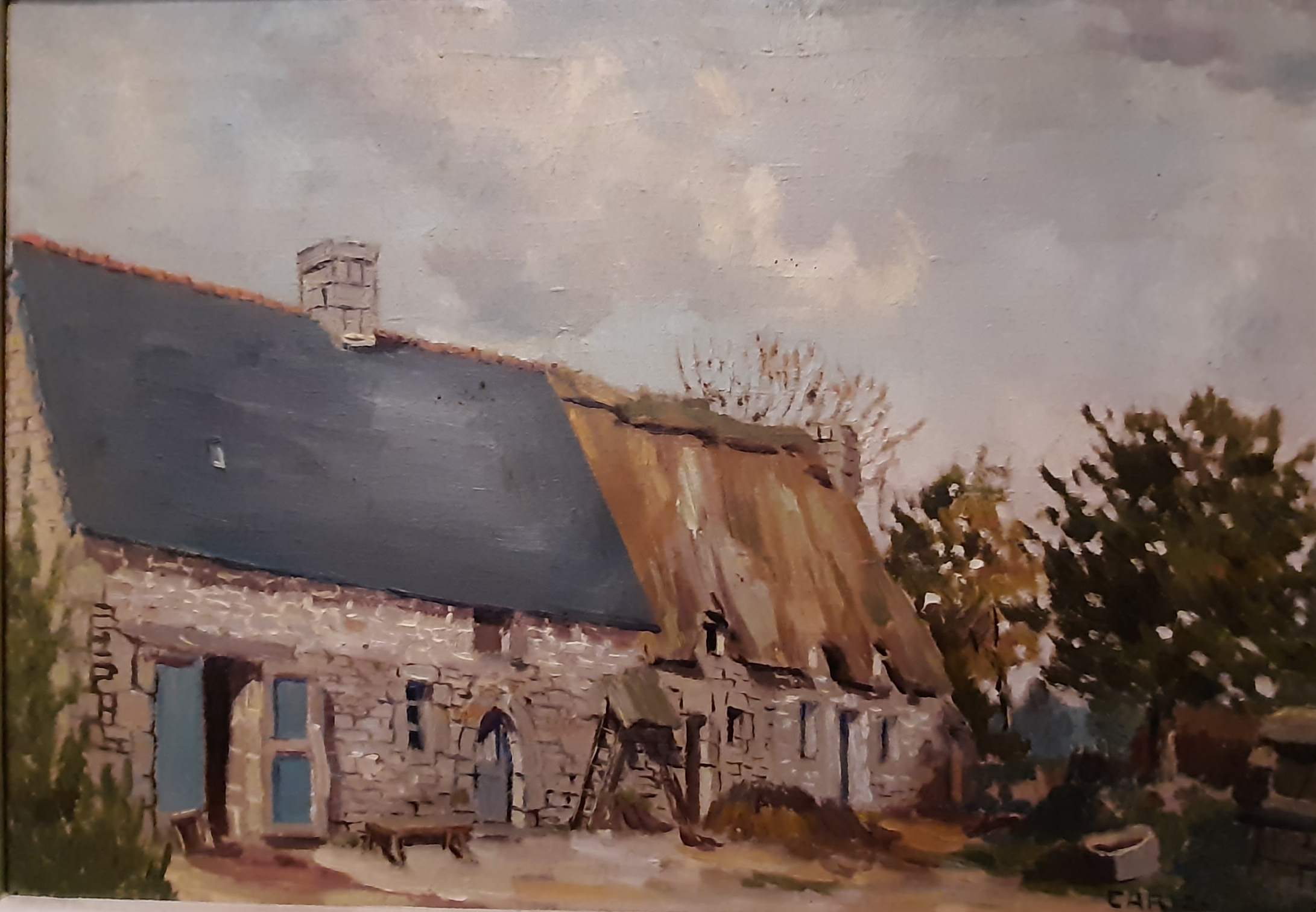 La ferme de Ty Névé. Peinture par Pierre Cario, vers 1950 ( coll. privée)Immatriculation