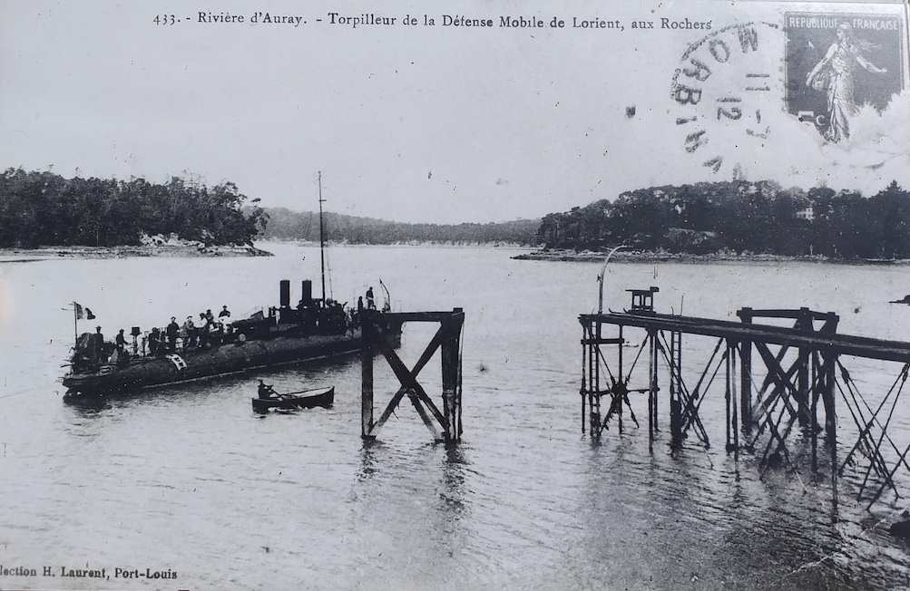 Photographie de torpilleur à proximité de l'appontement de la caserne militaire du BonoImmatriculation