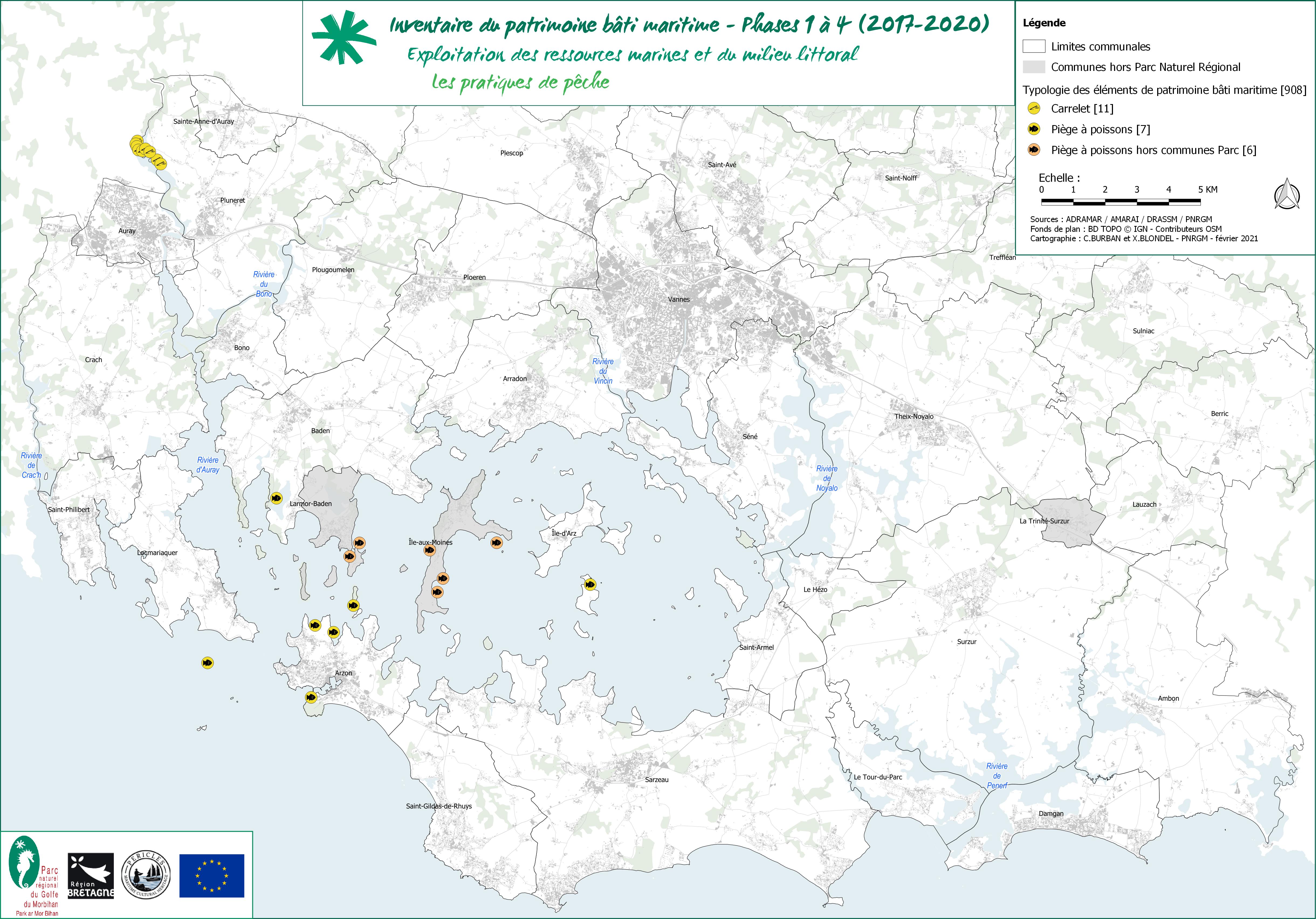 Pièges à poissons et carrelets recensés - phases 1, 2, 3 et 4 de l'inventaire du patrimoine bâti maritime - Parc naturel régional du Golfe du MorbihanImmatriculation